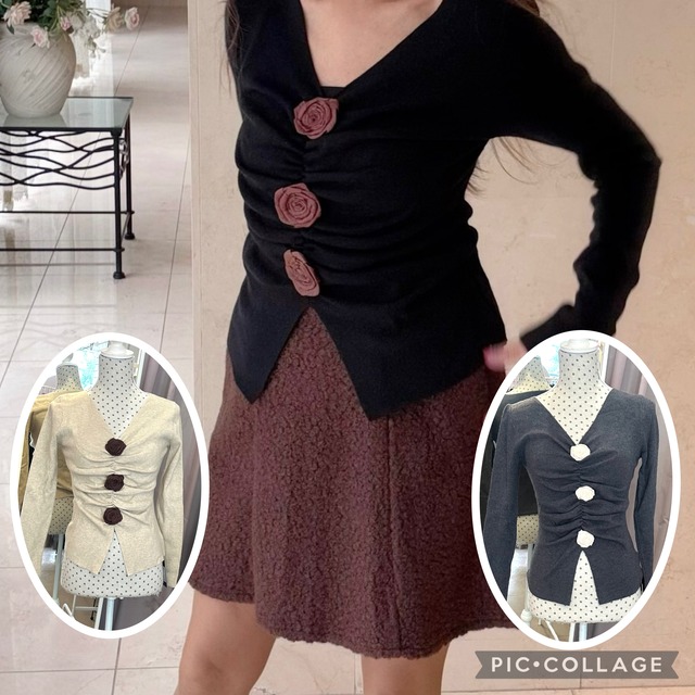 バラモチーフニット これからの季節にぴったりな「バラモチーフニット」が登場しました♡ 甘くて可憐なバラモチーフが全体を華やかに演出し、女性らしさを引き立ててくれます!柔らかなニット素材で、着心地も抜群です^_−☆ どんなコーディネートにも合わせやすい優れもの!デニムやスカートと組み合わせれば、カジュアルからフェミニンまで幅広く楽しむことができます。春の訪れを感じさせる一枚として、ぜひお迎えしたいアイテムです! [サイズ] ワンサイズ 着丈 54cm 肩幅 37cm 身幅 41cm 袖丈 59cm [素材] ポリエステル40% アクリル 30% ナイロン 24% ウール 6% [カラー] ブラック グレー ベージュ ※撮影時のライティングや、お客様のご覧になっているモニター・PC環境により、実際の商品と色味が異なって見える場合があります。 ※海外製品のため、ハンドメイドの特徴として個体差が見られることがあります。品質にご理解いただける方におすすめです。 ※「イメージと異なる」「サイズが合わない」「やっぱり気が変わった」といったお客様都合による返品・返金は致しかねますのでご了承くださいませ。 ※万が一、商品の不良または当店の不手際により不備があった場合には、商品到着後3日以内にご連絡くださいませ。