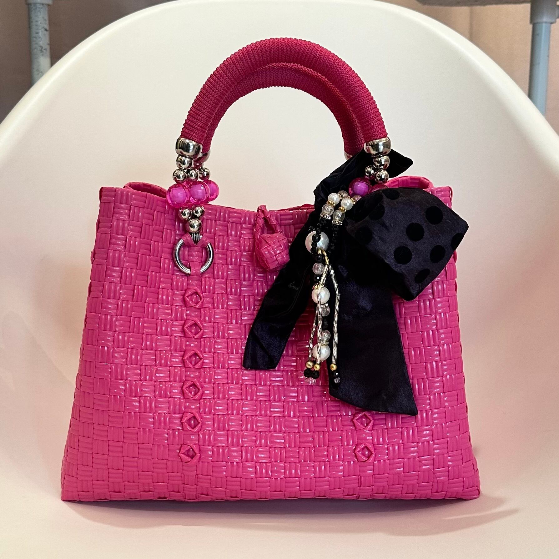 華やかなフューシャピンクが目を引くバリニーズバッグ.エレガンスシリーズ.MSサイズは、洗練されたデザインと機能性を兼ね備えた魅力的なアイテムです!