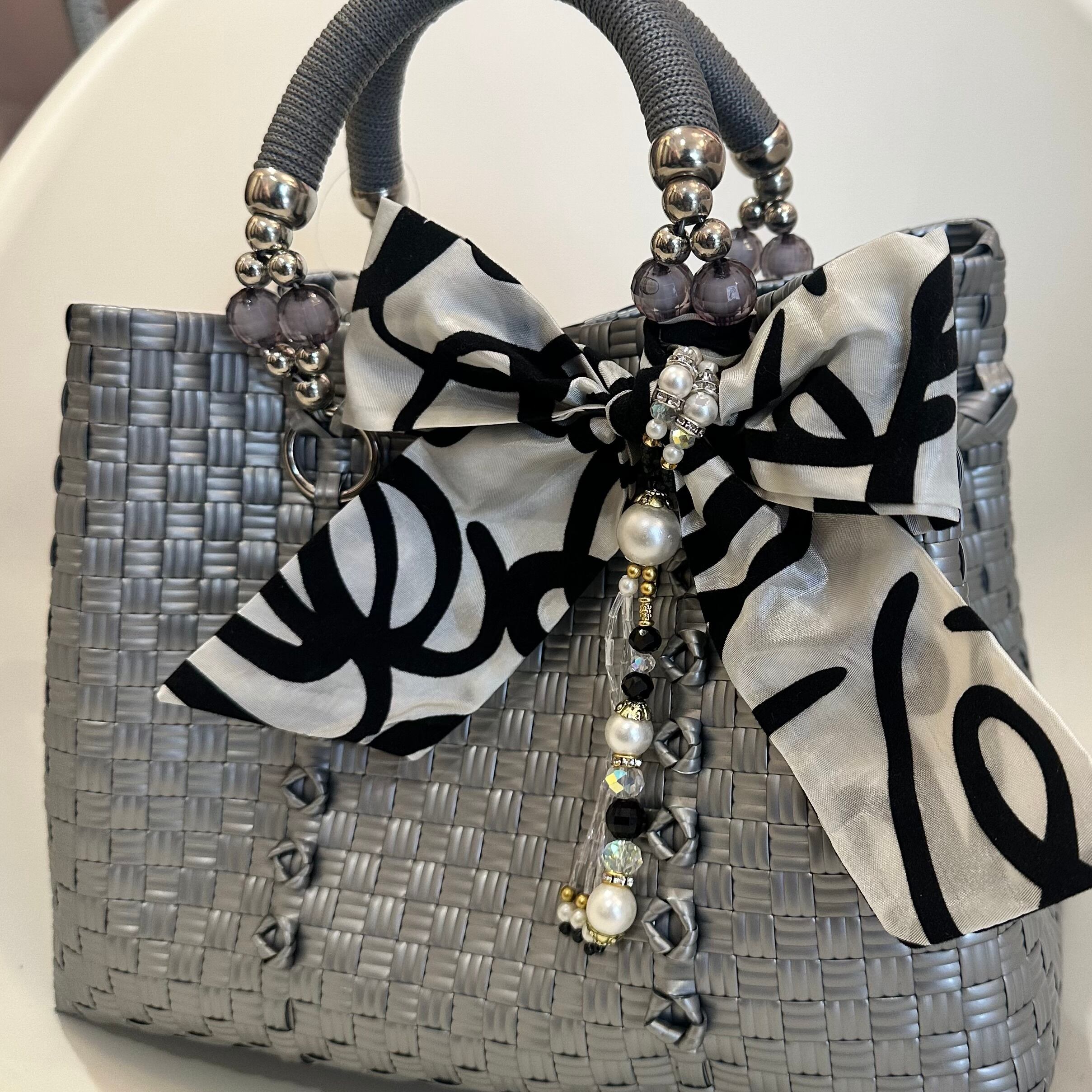 美しいシルバーが魅力のバリニーズバッグ.エレガンスシリーズ.MSサイズは、洗練されたデザインと使い勝手の良さを兼ね備えた素敵なアイテムです!