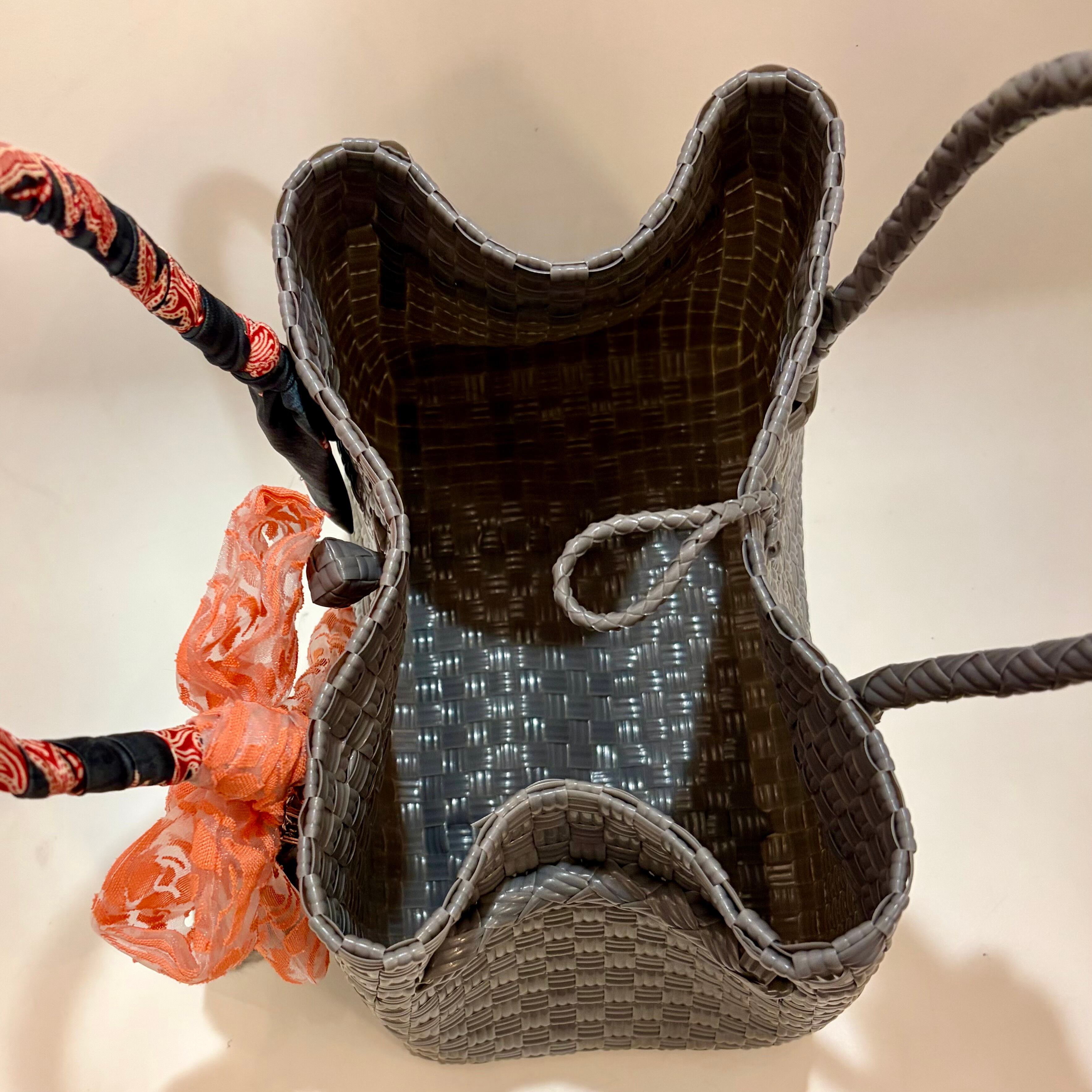 バリニーズバッグ.MSリボン.グレー.ファーチャームつき