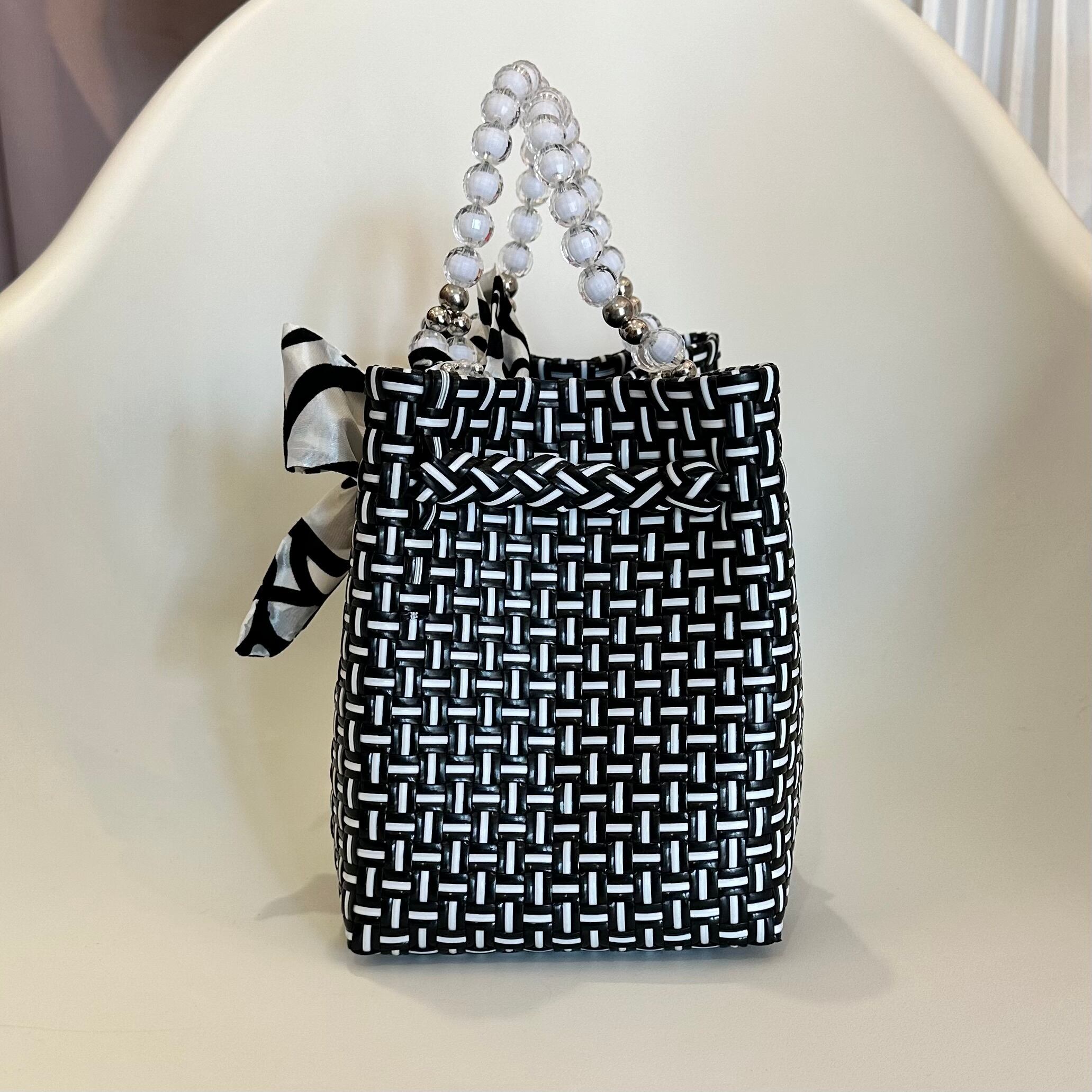 シックなブラックとホワイトのコントラストが際立つ、バリニーズバッグ.エレガンスシリーズ.MSサイズ.ブラック×ホワイト!洗練されたデザインがどんなスタイルにも合い、洗練された雰囲気を演出します!エレガントなフォルムが、シンプルなコーディネートに華を添える特別なアイテムです。