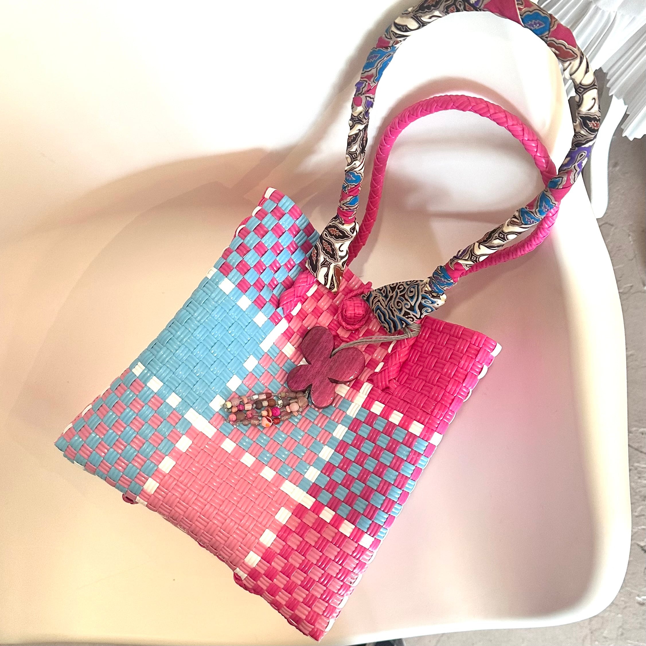 バリニーズバッグ.Mサイズ.ピンク×ライトブルー