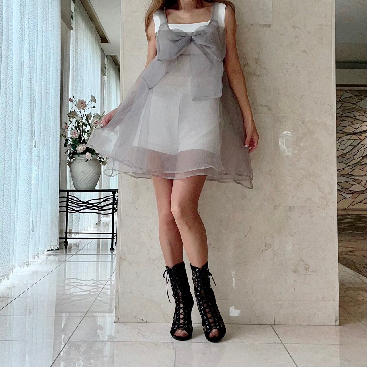 (可愛すぎるのでは?と思われる方は、後ろ前に着て、リボンを背中に持っていくとスッキリ大人っぽくなりますよ!)