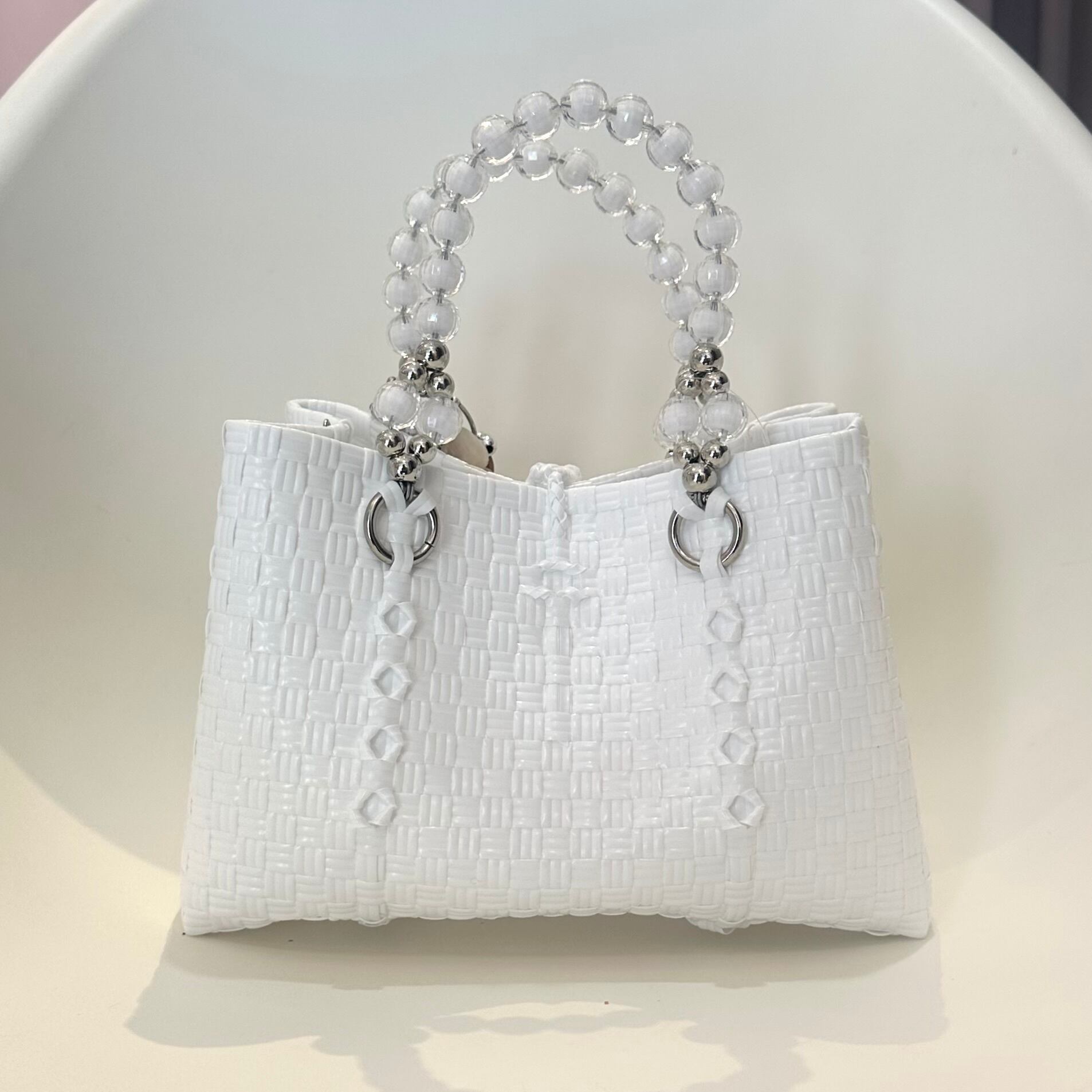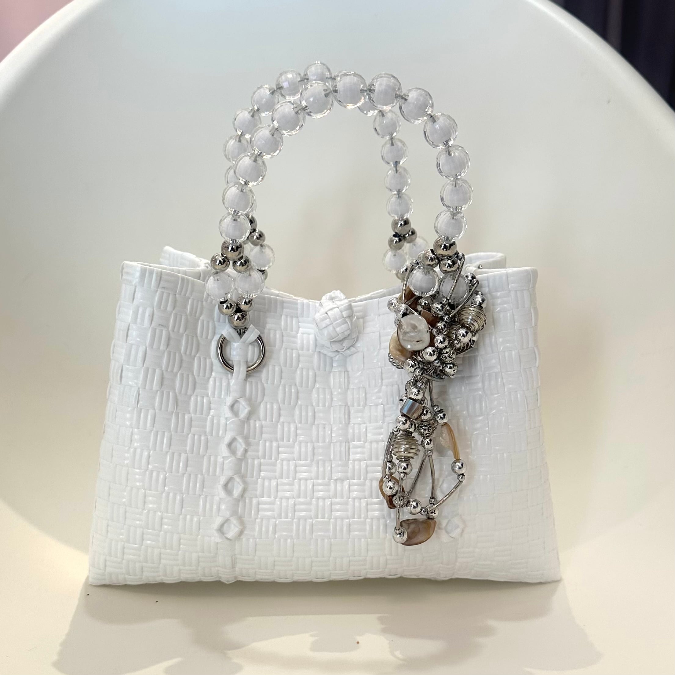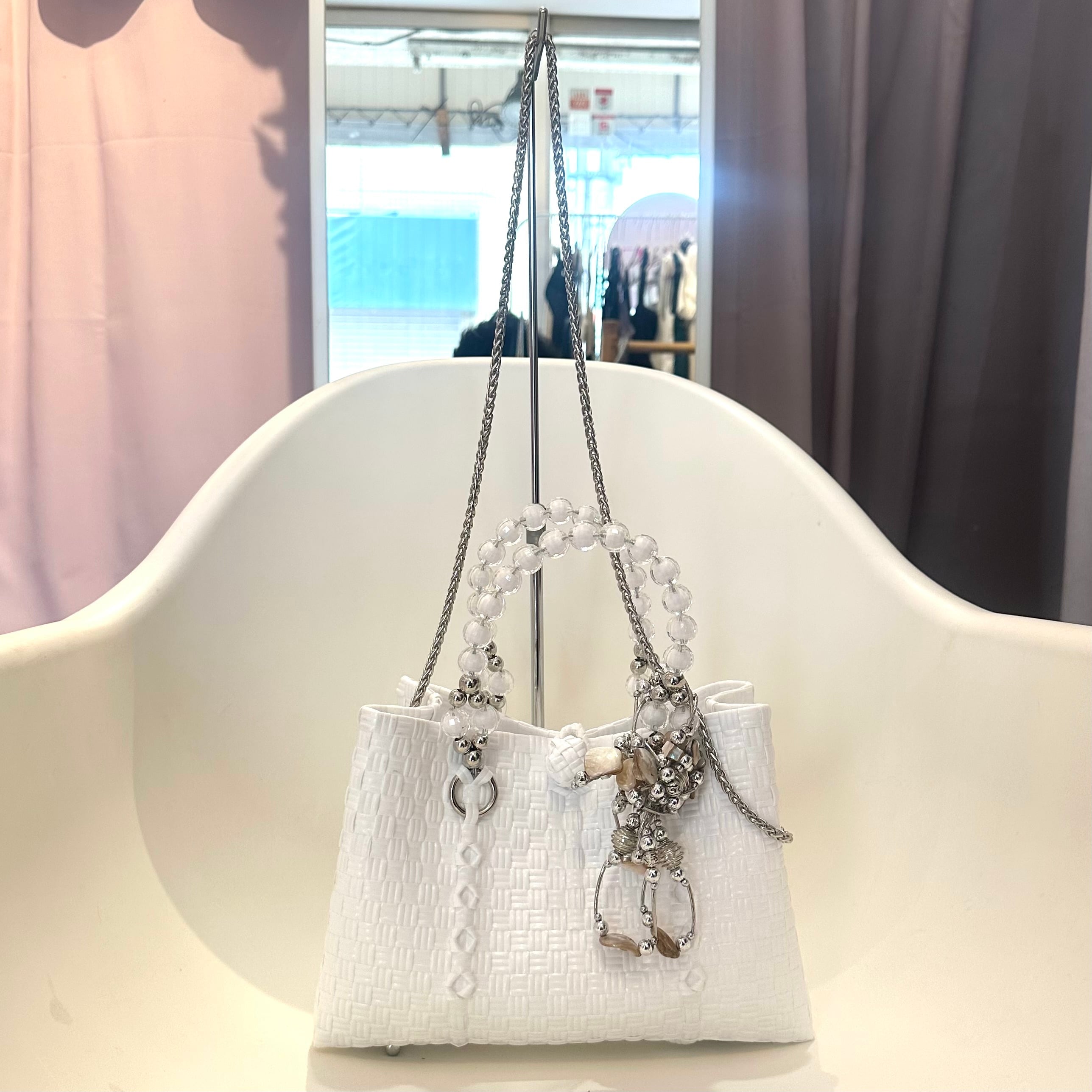 バリニーズバッグ.エレガンスシリーズ.SSサイズ.チェーン付き.ホワイト