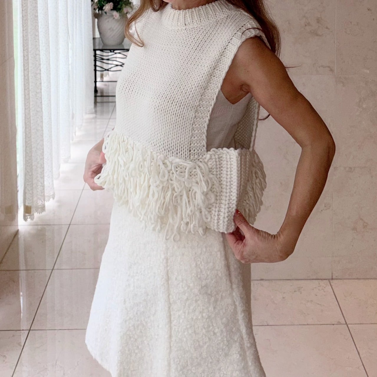 特徴的なフリンジがあしらわれたデザインは、シンプルなコーディネートにも華やかさを添え、個性を引き立てます。さまざまなトップスやボトムスと組み合わせやすく、コーディネートの幅がぐっと広がる一着として、ぜひお手元に加えていただきたいアイテムです。