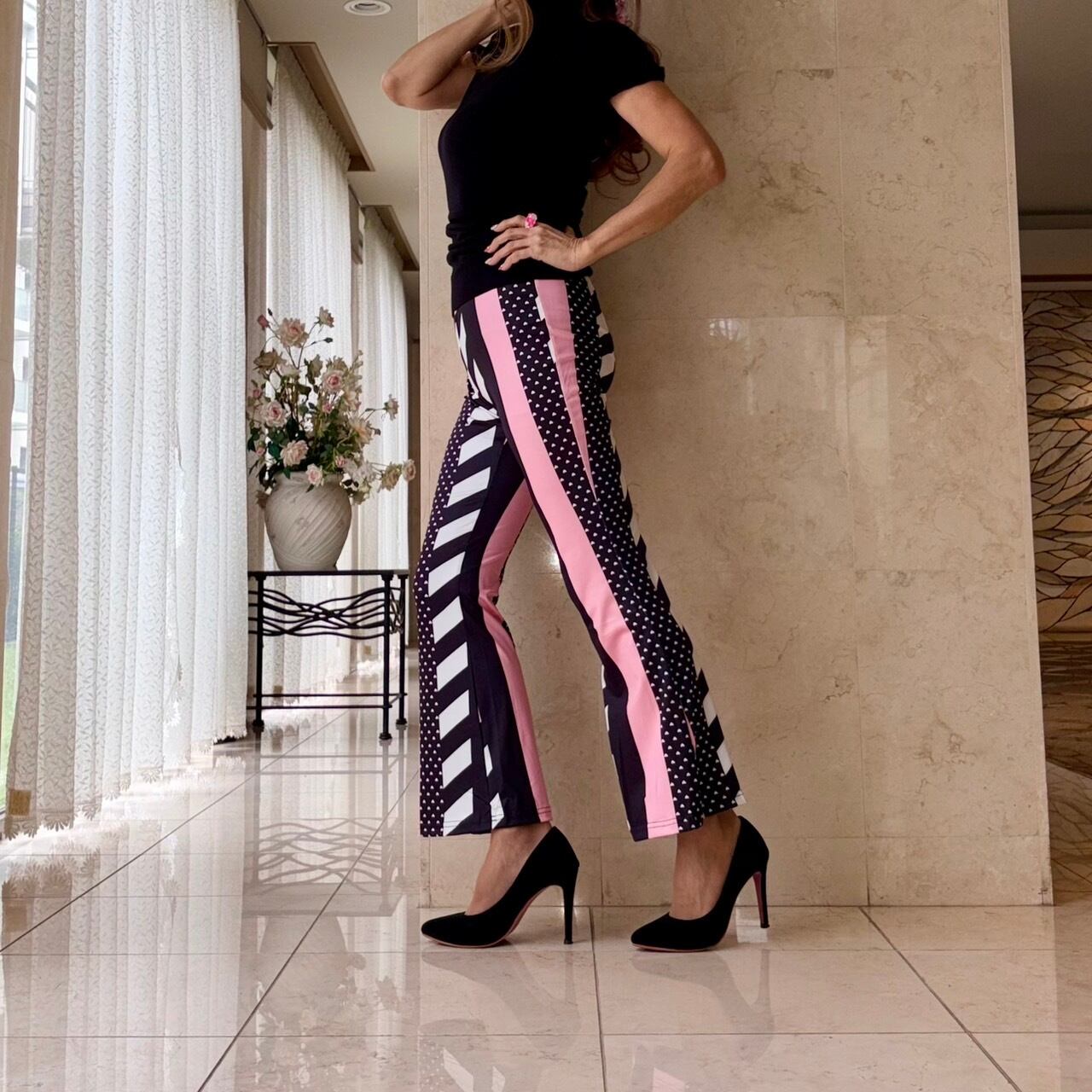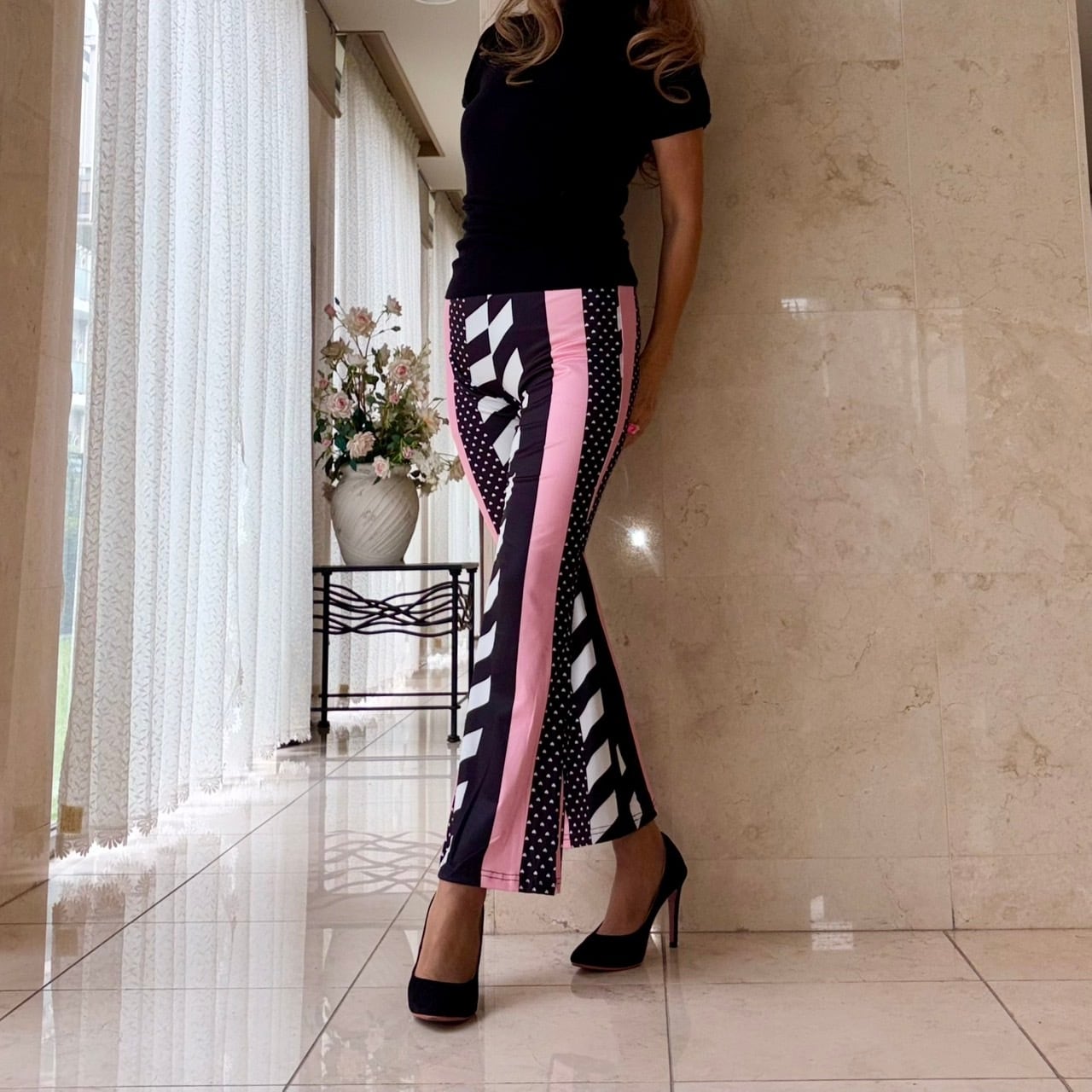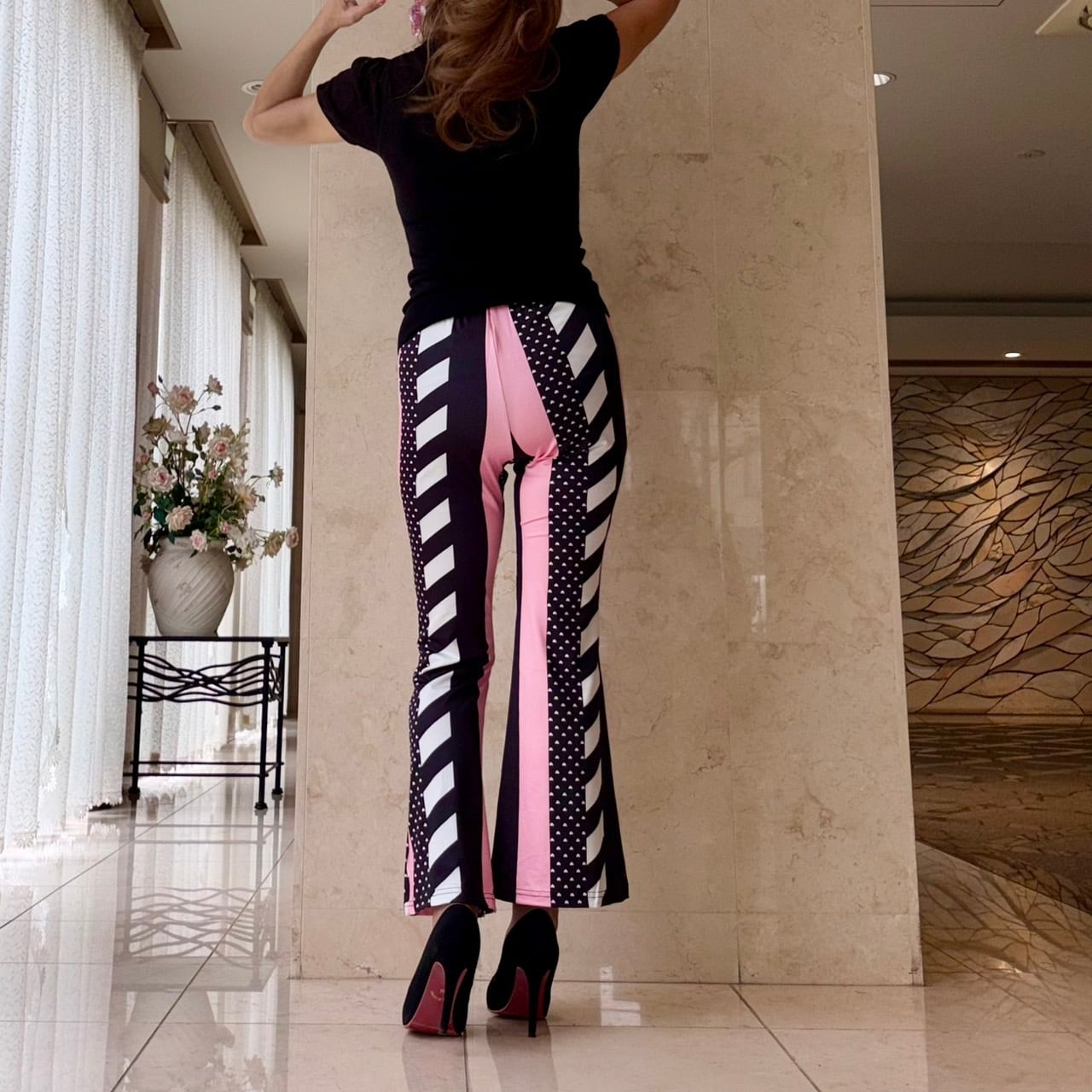 この季節にぴったりの「ハート柄ドットストライプラインベルボトムパンツ」が新登場しました♡