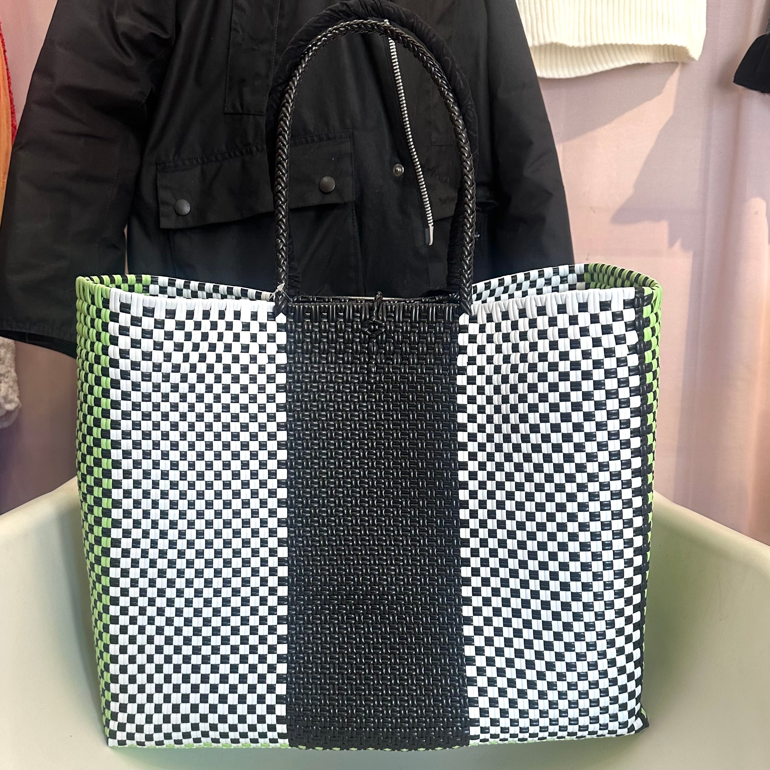 バリニーズバッグ.XXLサイズ.ホワイト×ブラック×グリーン