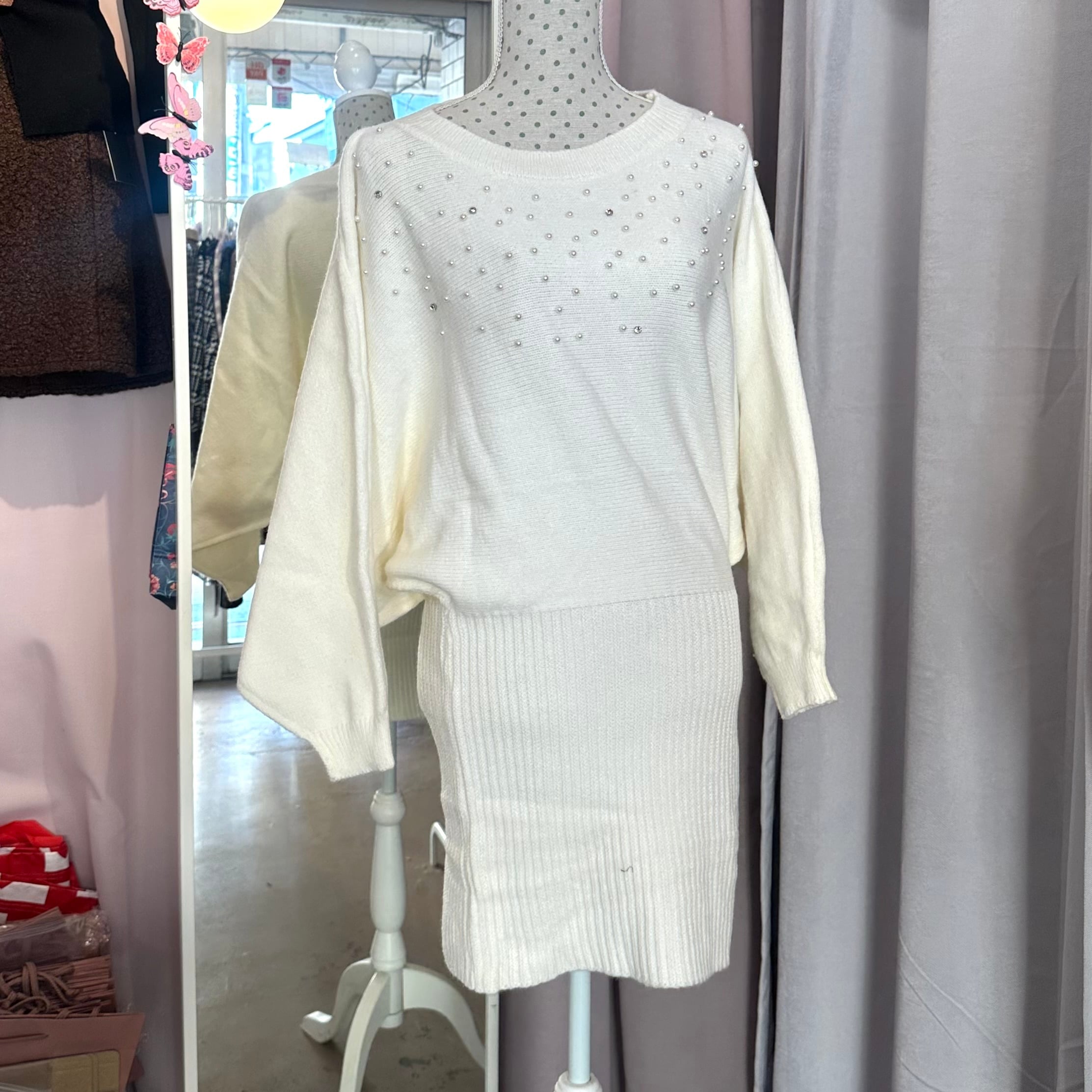 「パール×ビジュー ドルマンスリーブニットワンピース」が新登場です♡