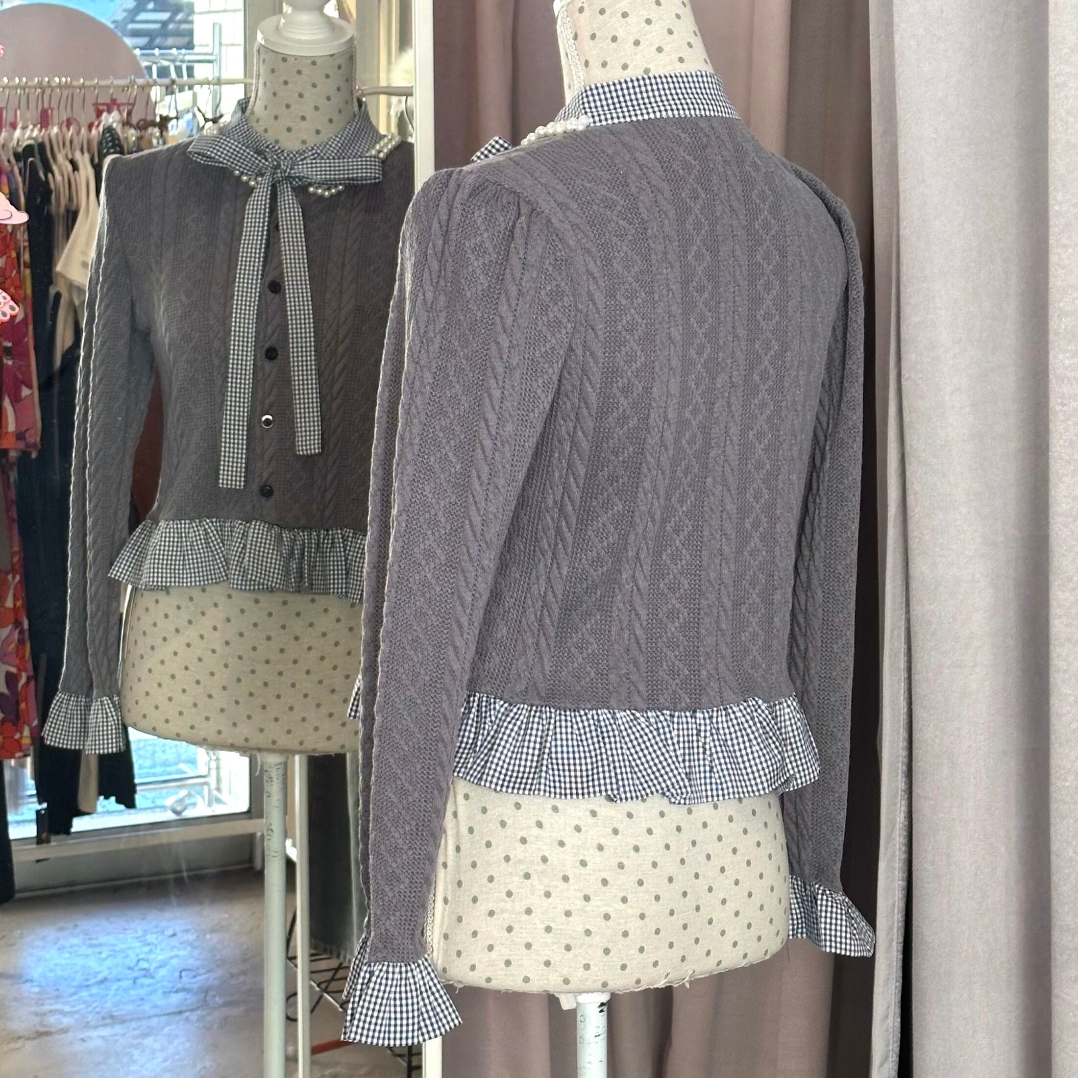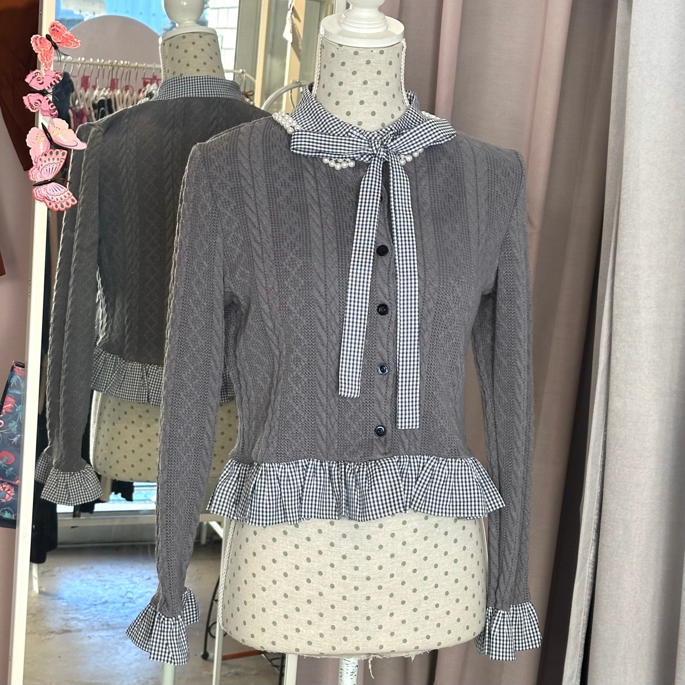 ボウタイシャツ ドッキングカーディガン