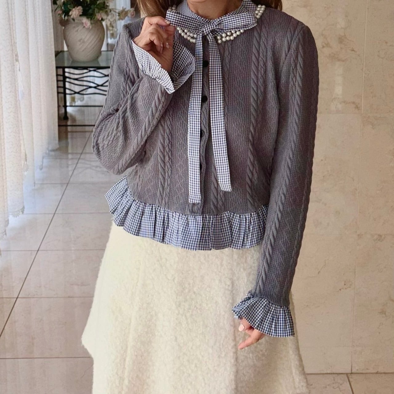 今季のスタイルにぴったりなボウタイシャツ ドッキングカーディガンが登場です!ボウタイデザインがエレガントさを引き立てつつ、カーディガンとしての機能性も備えた一枚です♡