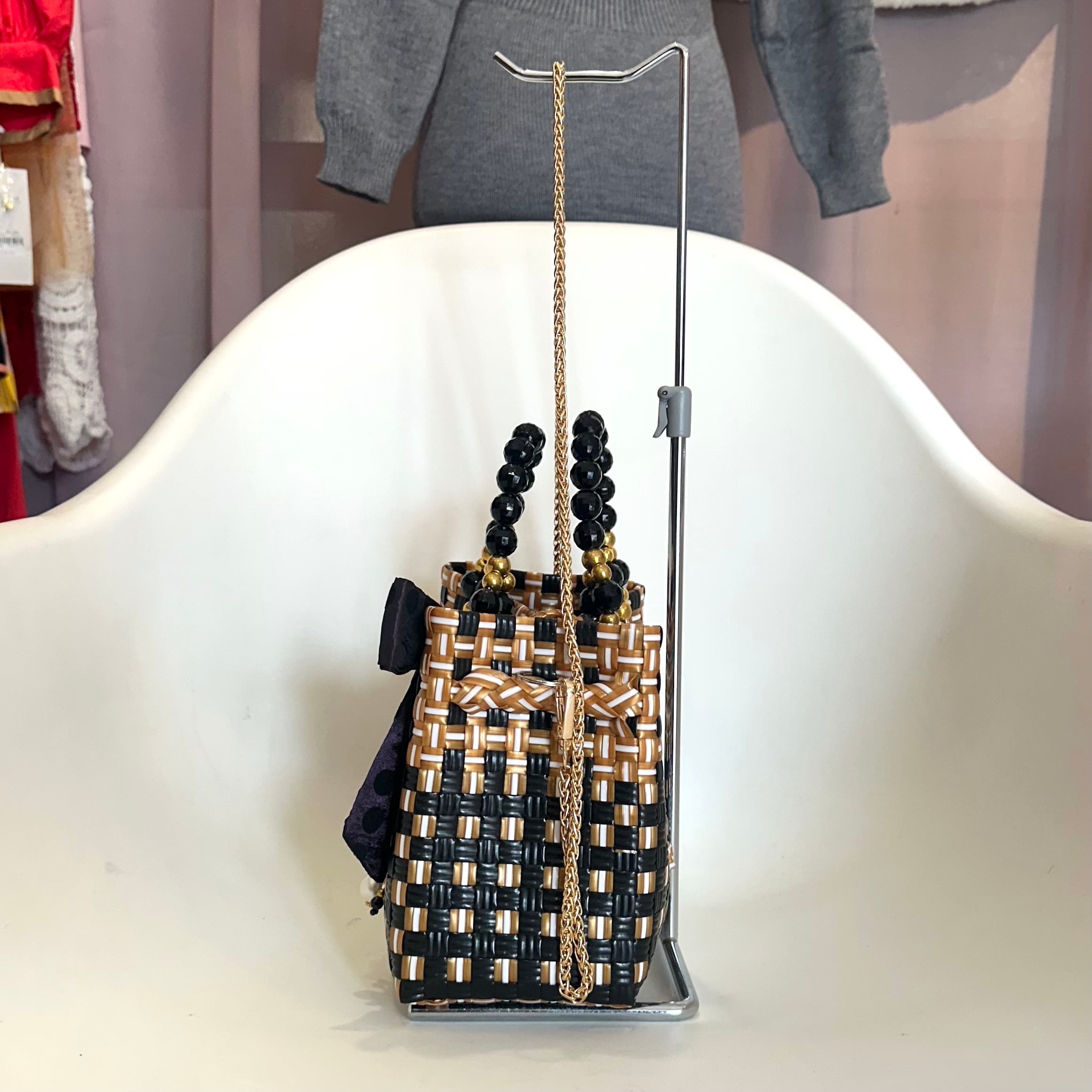 バリニーズバッグ.エレガンスシリーズ.SSサイズ.ブラック×ゴールド.チェーンつき