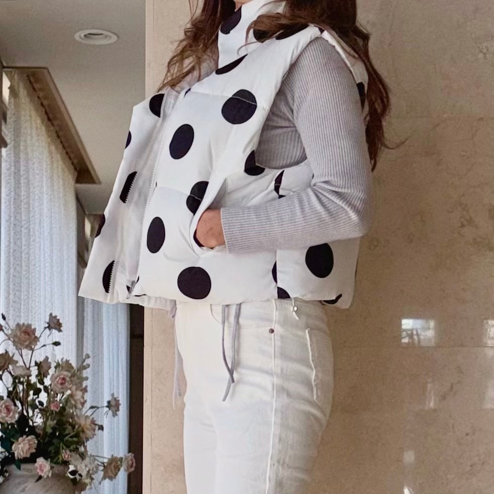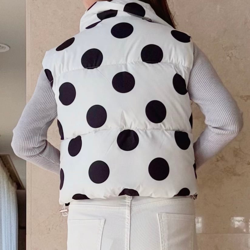 ふんわり軽い中綿入りで、シーズンの変わり目に重宝するキュートなドット柄ベストです♡