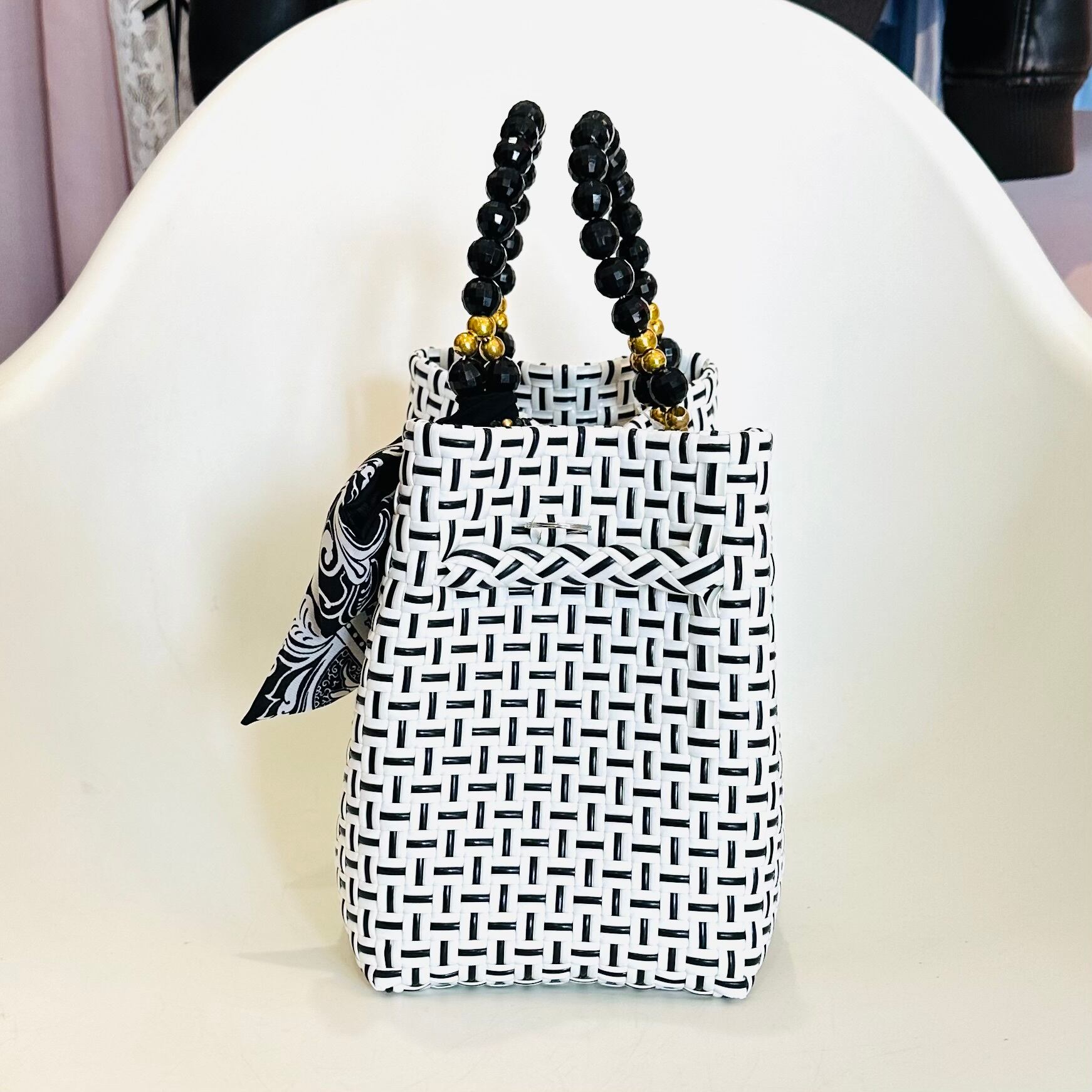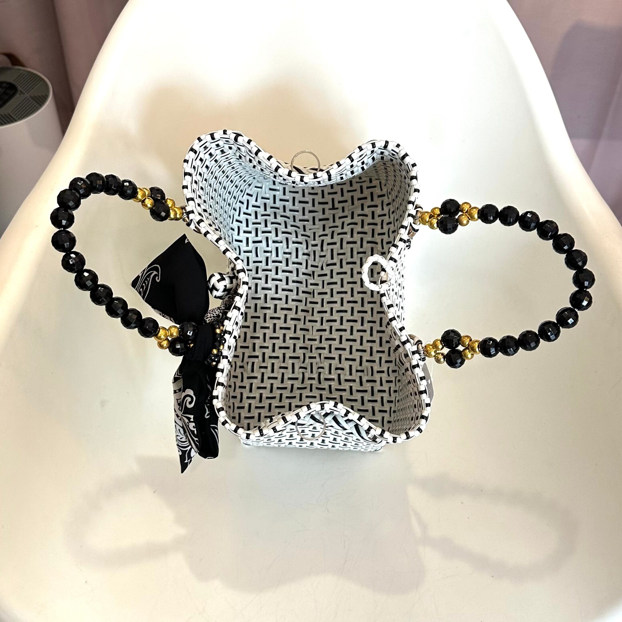 バリニーズバッグ.エレガンスシリーズ.MSサイズ.ホワイト×ブラック