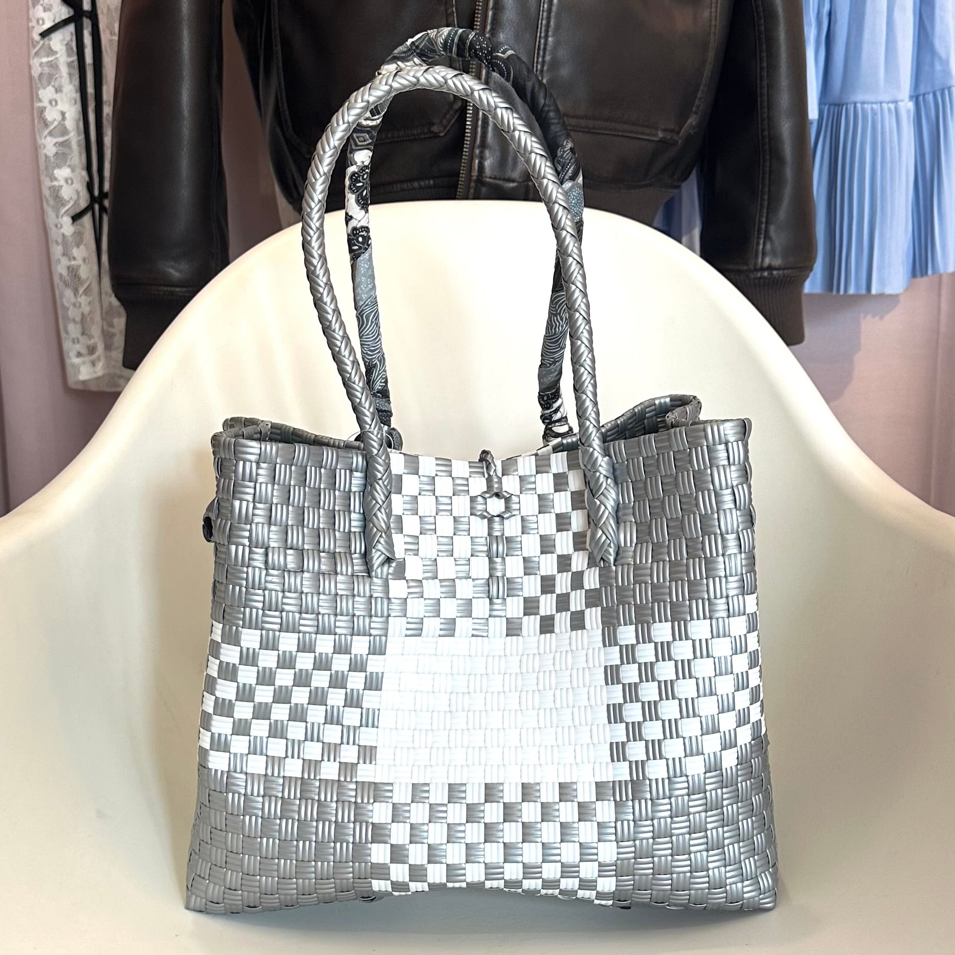 バリニーズバッグ.XLSサイズ.シルバー×ホワイト