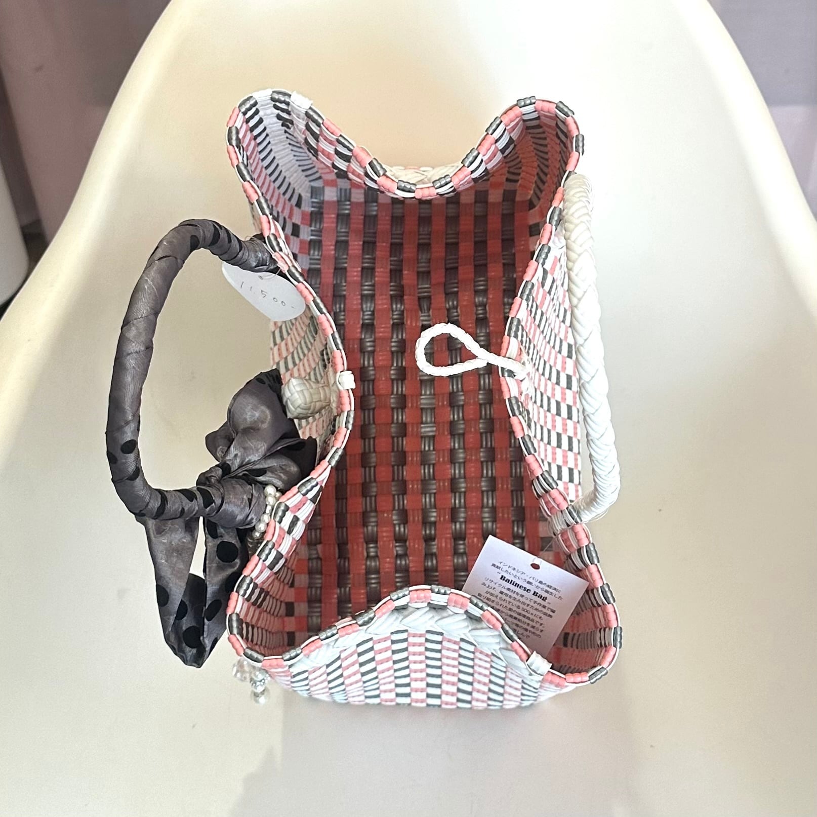 バリニーズバッグ.XLリボン.ピンク×シルバー×ホワイト