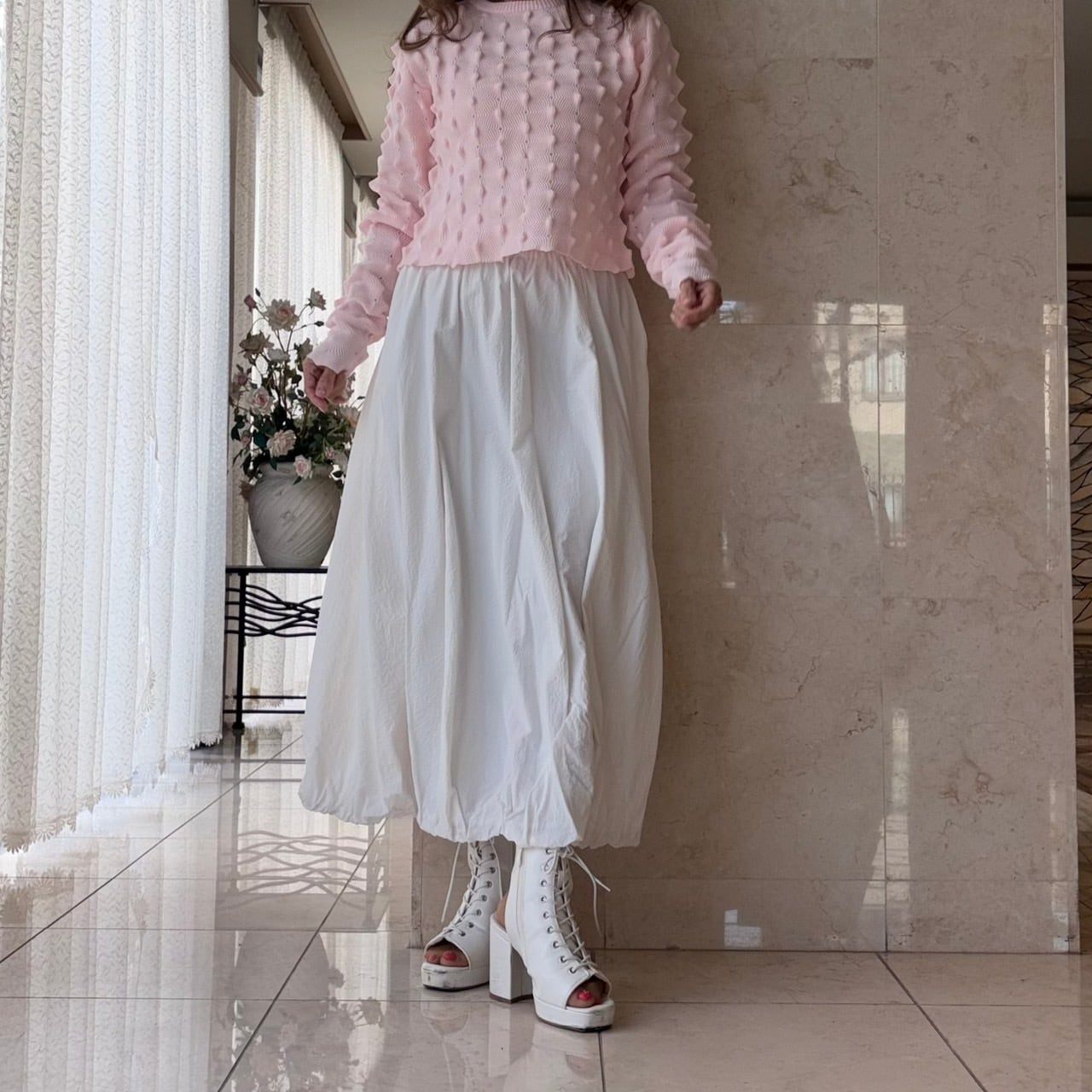 ふわっと広がるシルエットが魅力的なバルーンスカート!軽やかな着心地で、デイリーから特別な日まで幅広く活躍する一着です。これからの季節にぴったりのアイテムで、毎日のコーディネートに華やかさをプラスします^_−☆