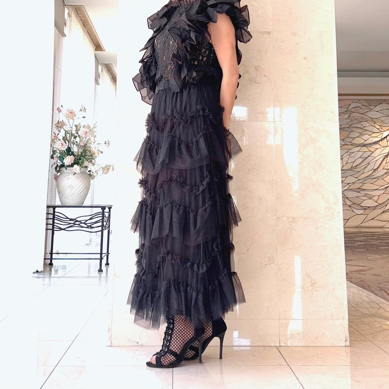 細やかなレースとフリルのディテールが、シンプルなボトムスとも相性抜群。あなたのスタイルに、エレガントなアクセントをプラスしてみてくださいね!