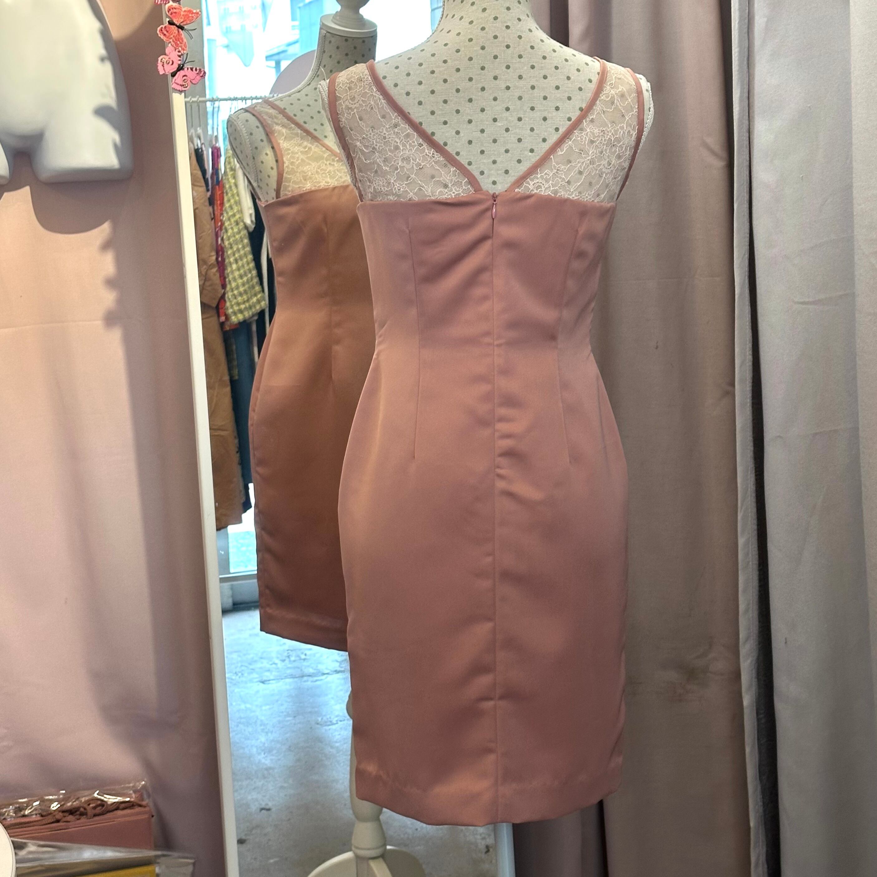 エレガントなVネックデザインと繊細なレースが魅力の、レースサテンドレスが新登場!光沢感のあるサテン生地が美しいシルエットを描き、特別なシーンにもふさわしい華やかさを演出します^_−☆