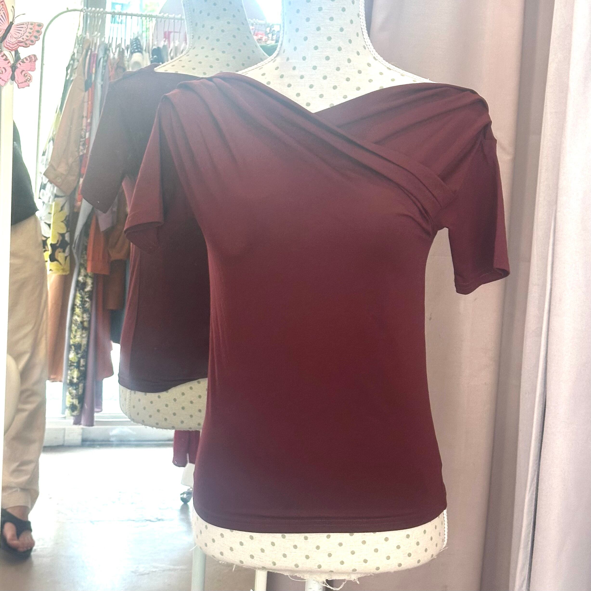 流れるようなドレープデザインが特徴のオフショルトップスで、女性らしさを引き立てる一着です。デコルテを美しく見せ、様々なスタイルにマッチするため、特別な日のお出かけやカジュアルな日常使いに最適です^ ^