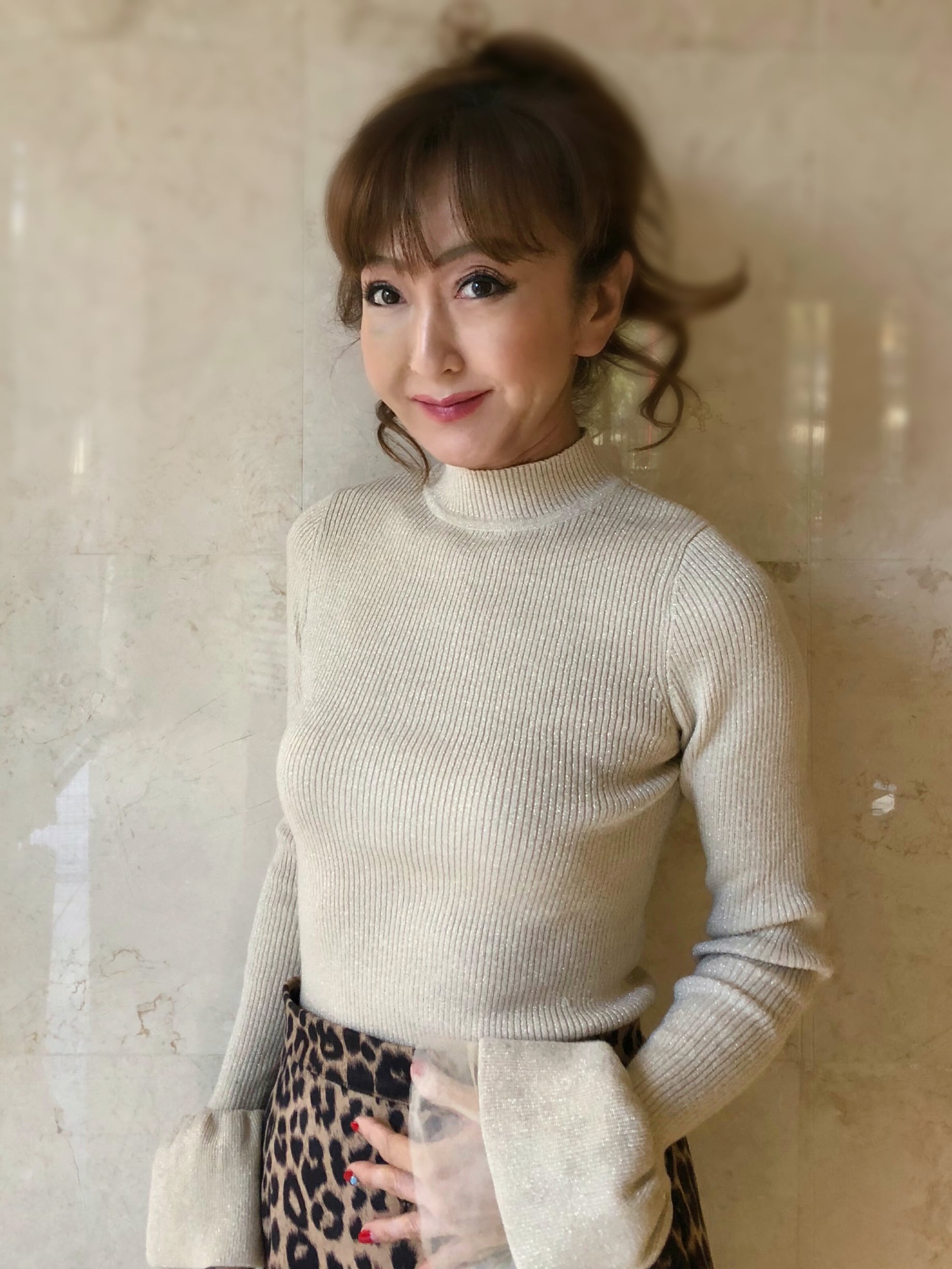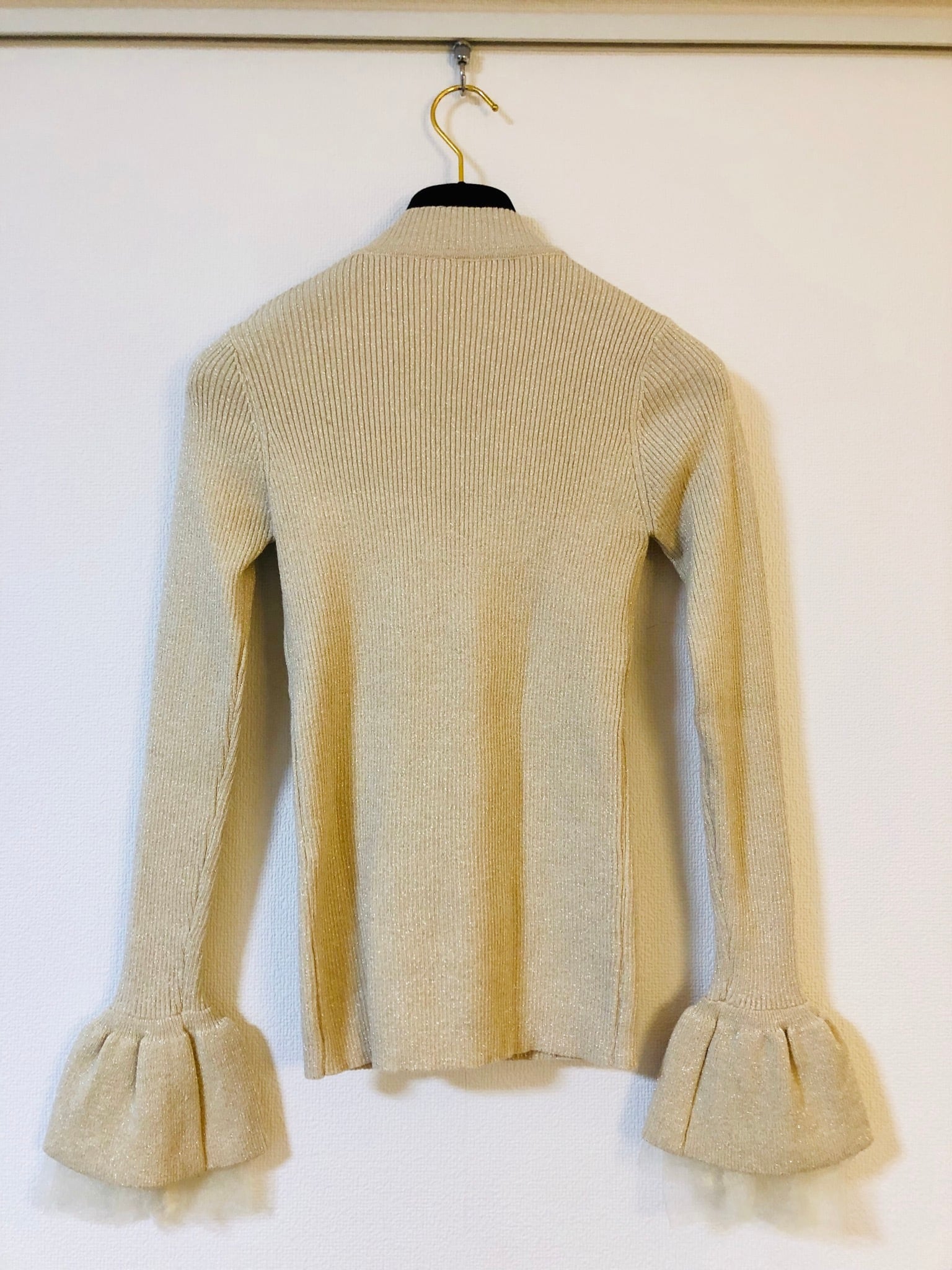 シンプルなハイネックニットながら、お袖のフリルが可愛い♡