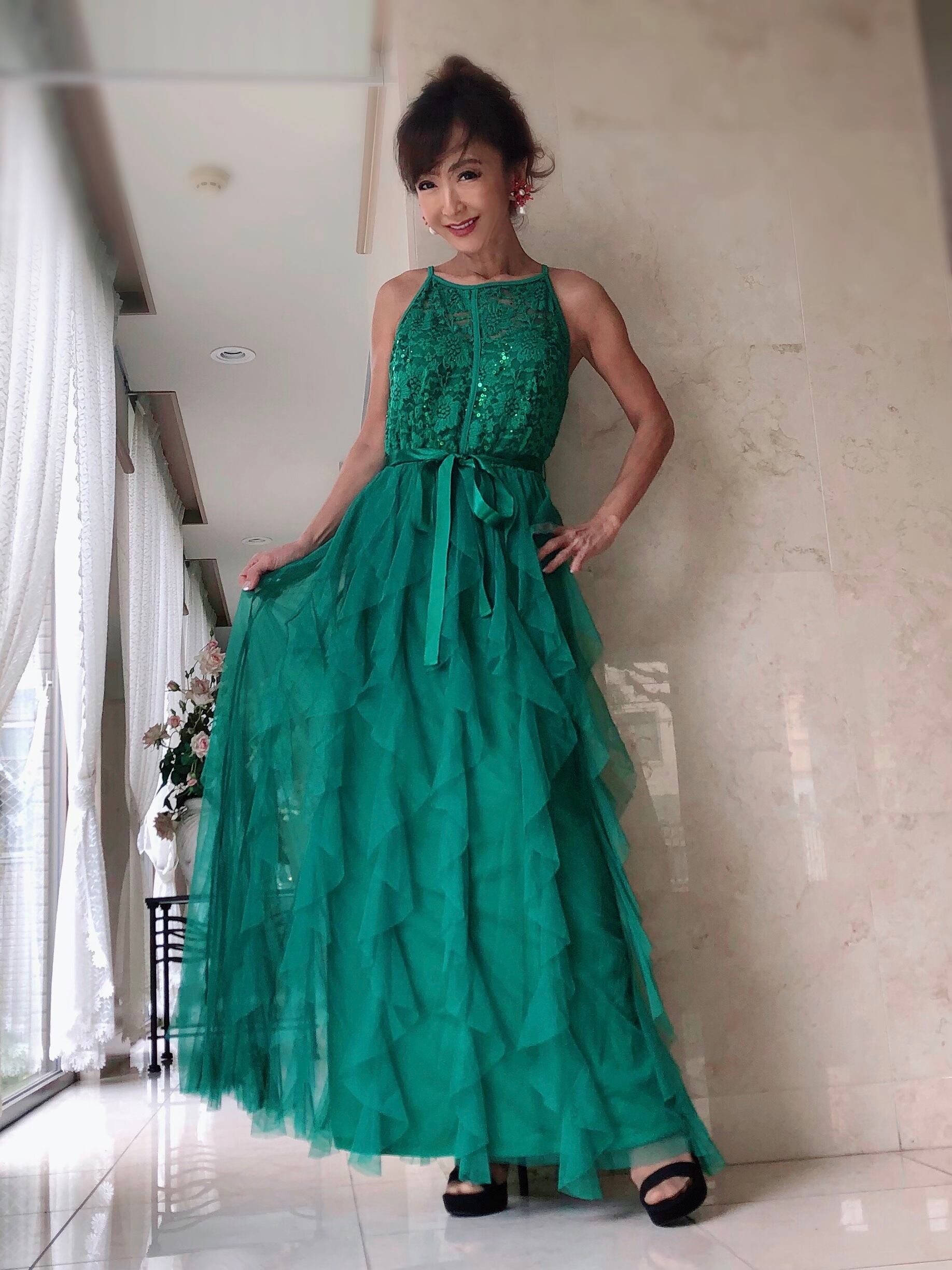 クリスマスツリーを思わせるような、こんなキュートなグリーンのドレスならクリスマスパーティーで注目間違いなし♡