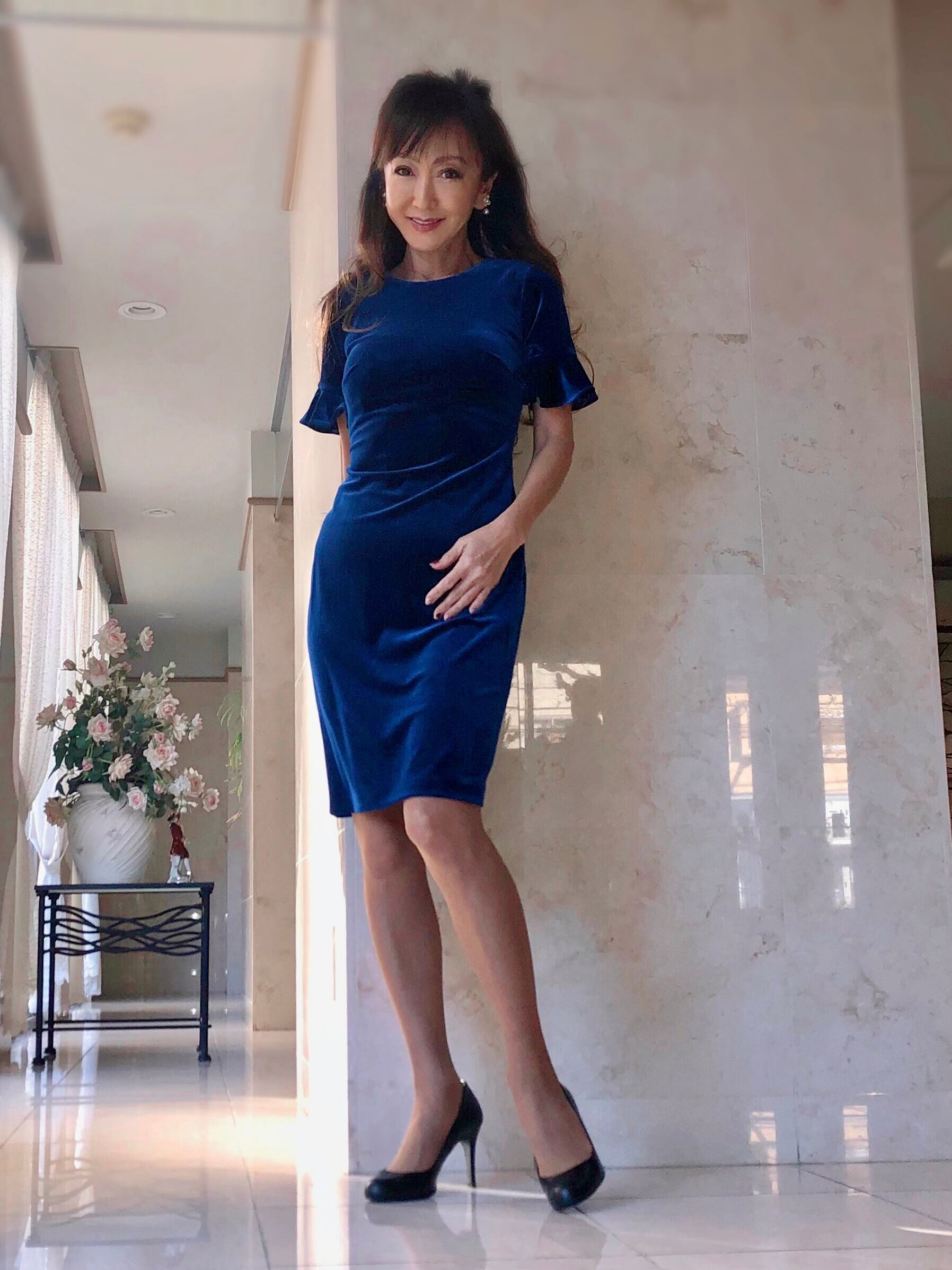 こちらは深いブルーが綺麗なベロアドレスです。