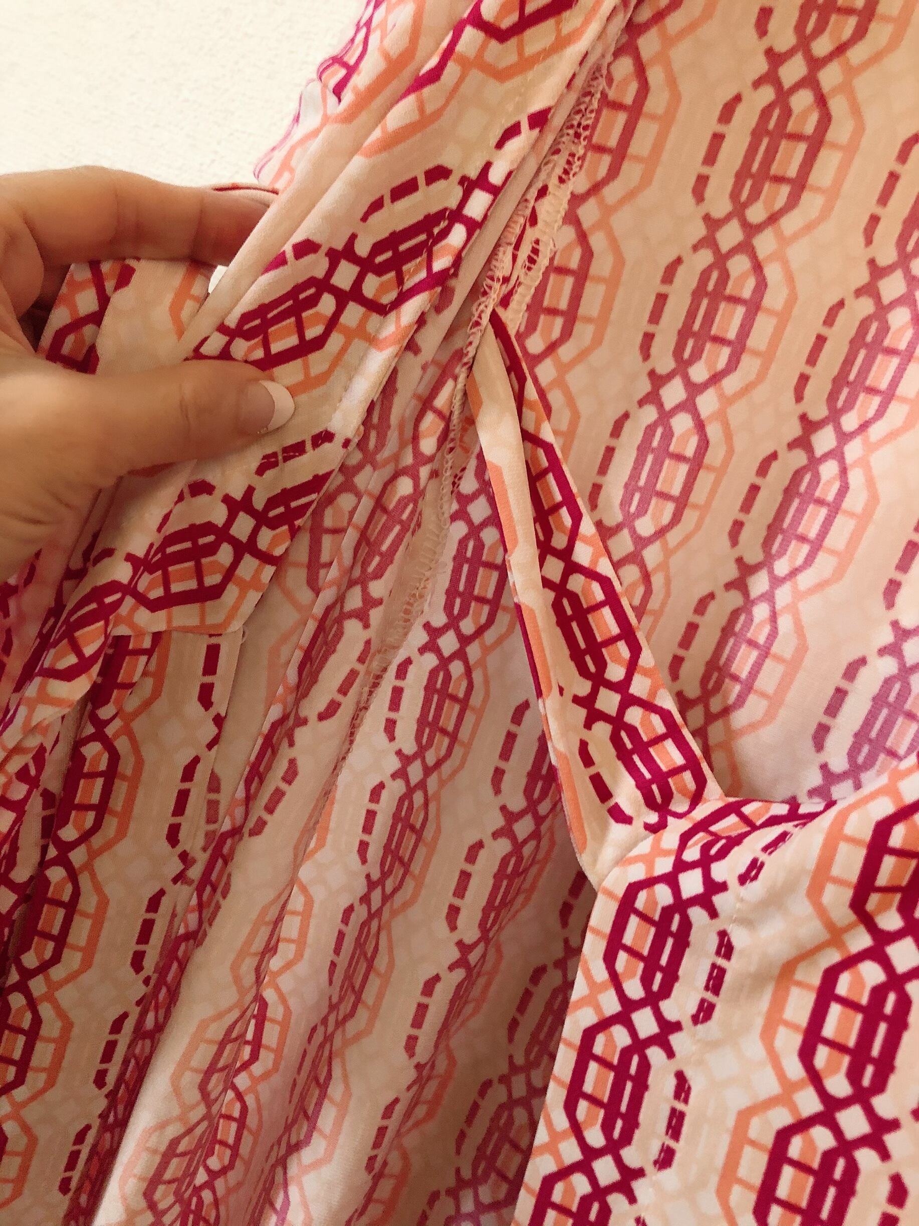 五分袖.マキシ丈でラップデザイン、モダンな色柄の一着です♡