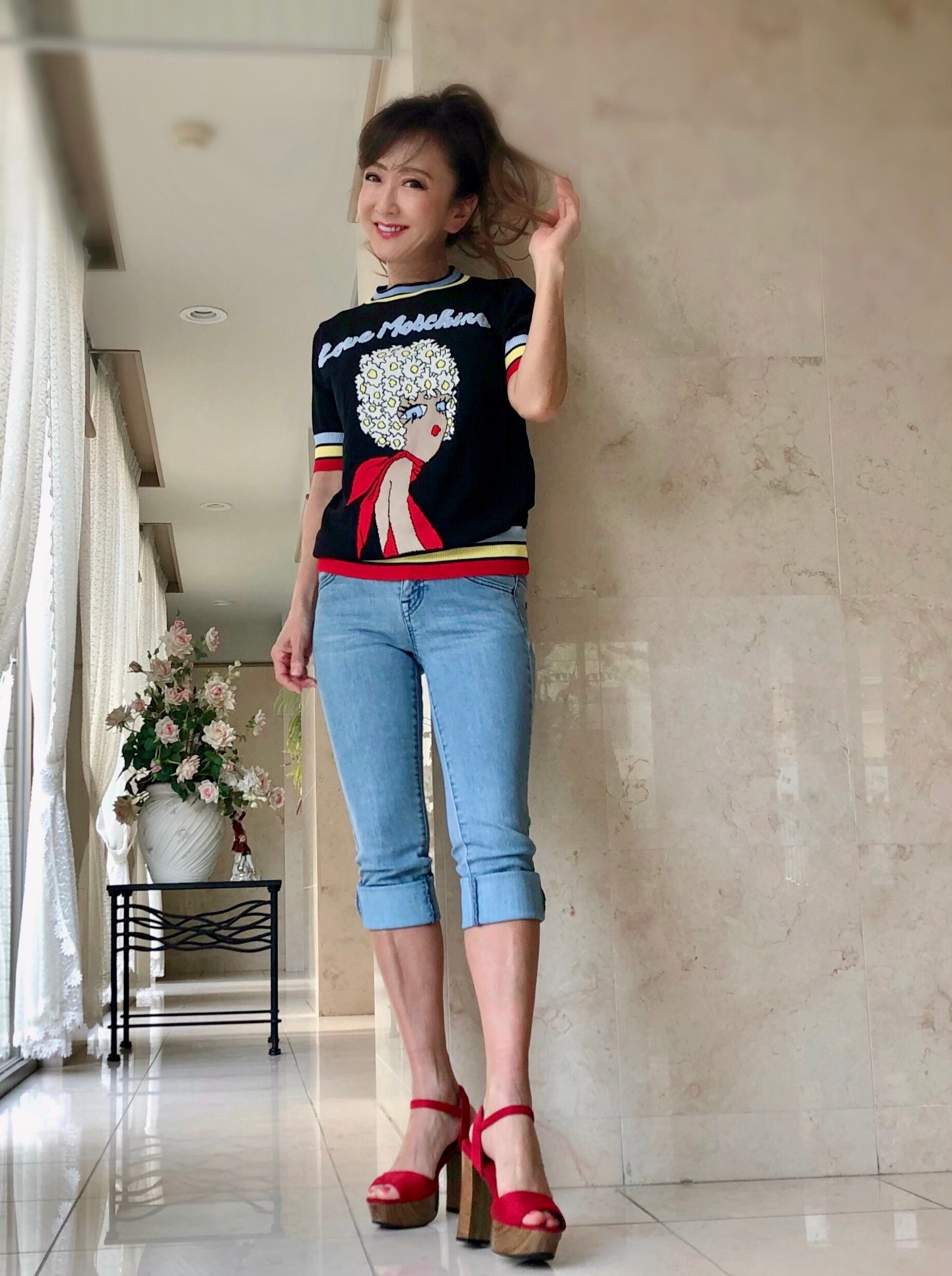黒や赤のスカートに合わせてもキュートですね!