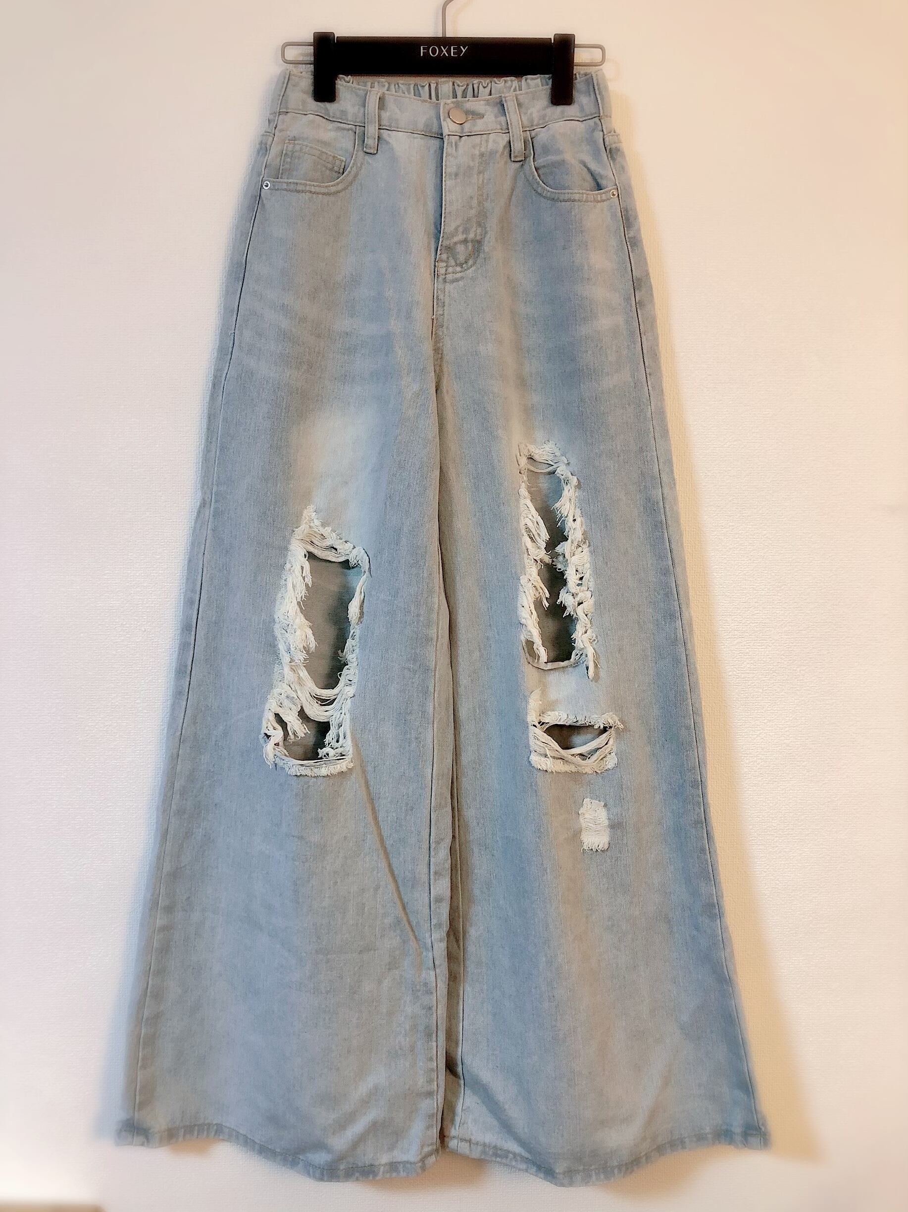 フロントに施した大胆なダメージと、ズドンと太いシルエットがなんともチャーミングなデニムです♡