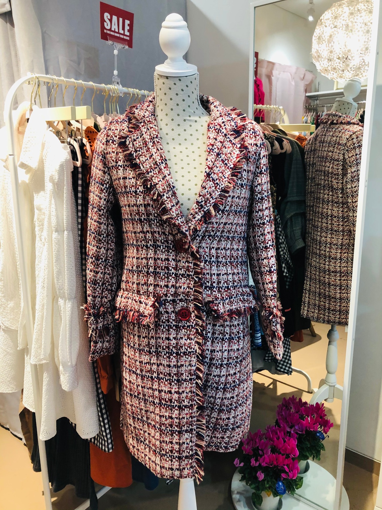 赤.紺.白.ベージュ等ミックスの、可愛いけれど落ち着いた色目のツイードで高見えします!