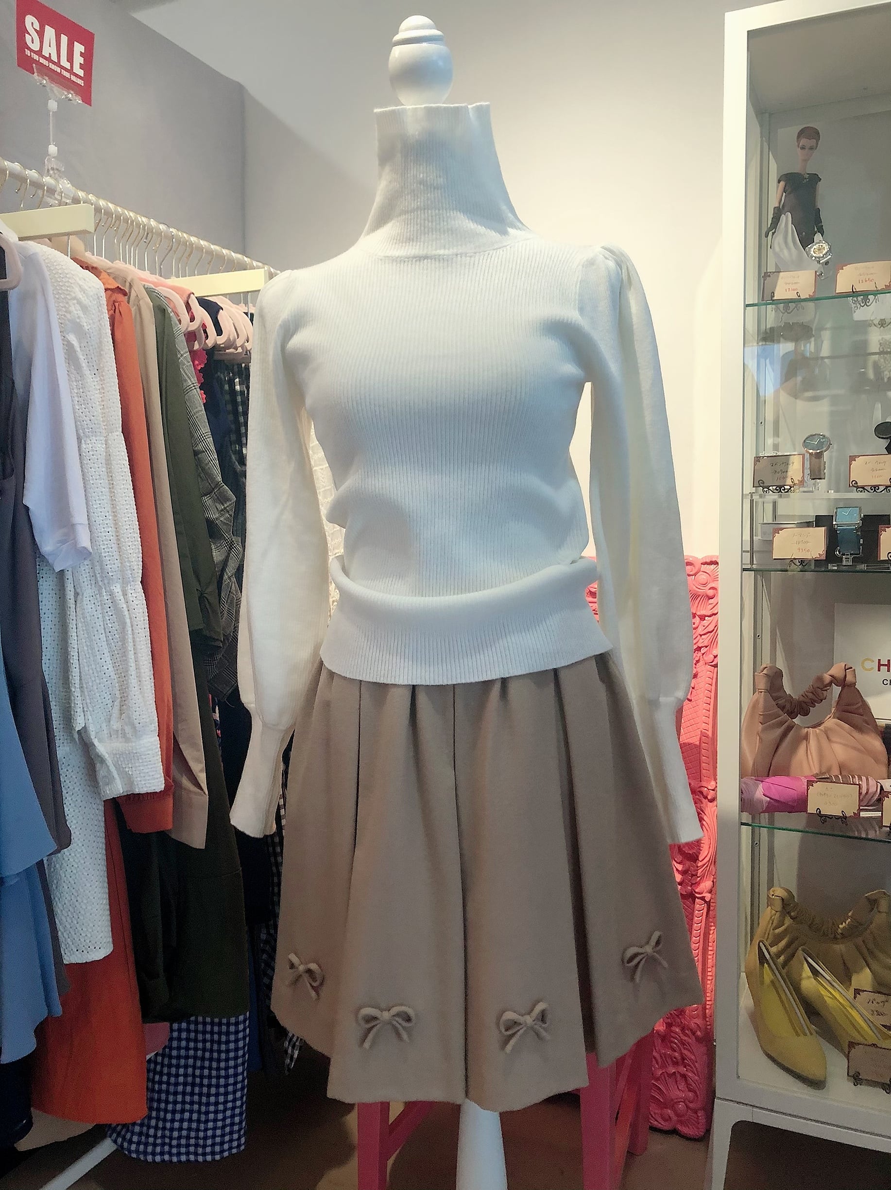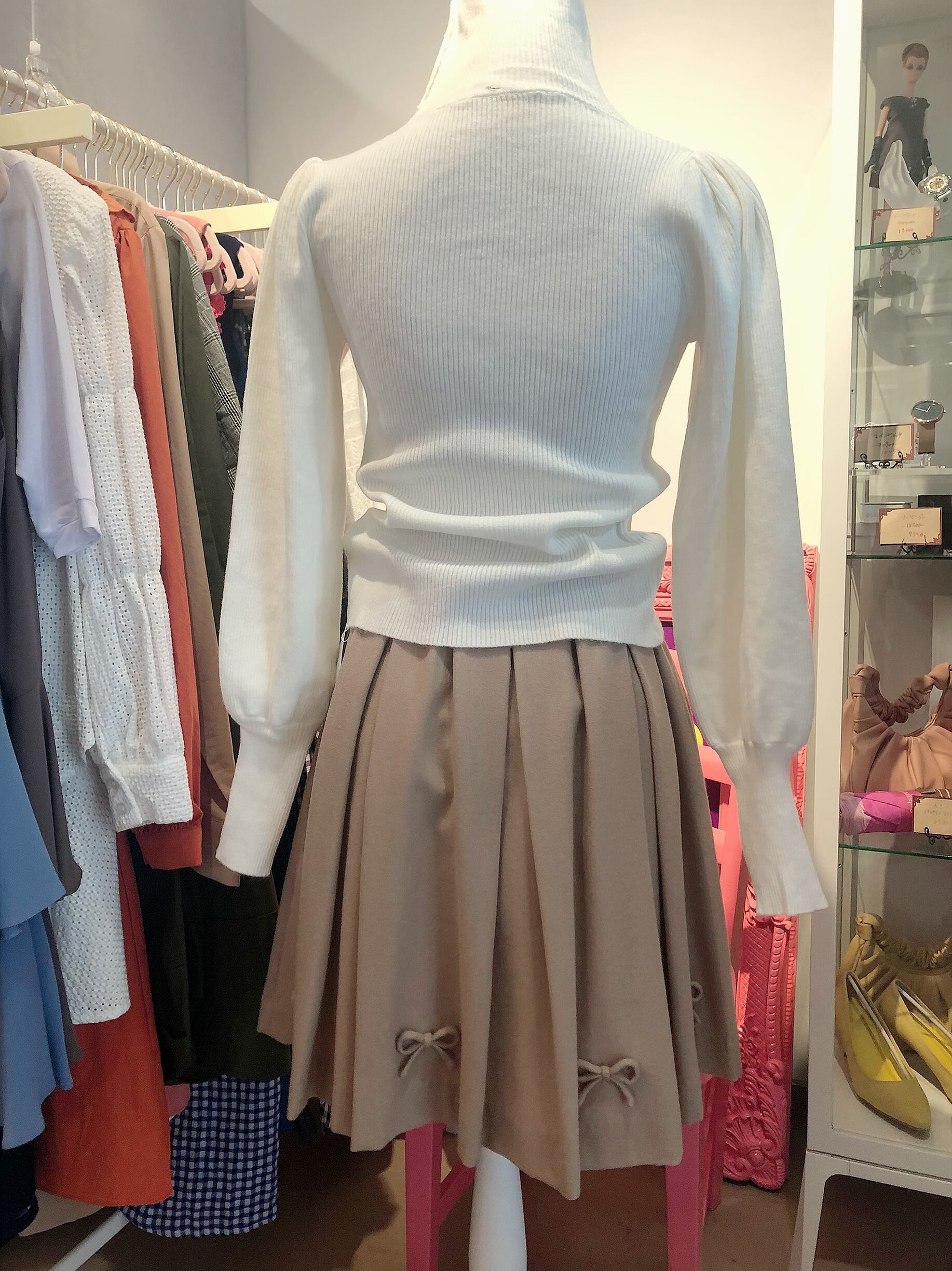 裾の小さなリボンがキュートな、やや短め膝丈のタックフレアスカートです♡