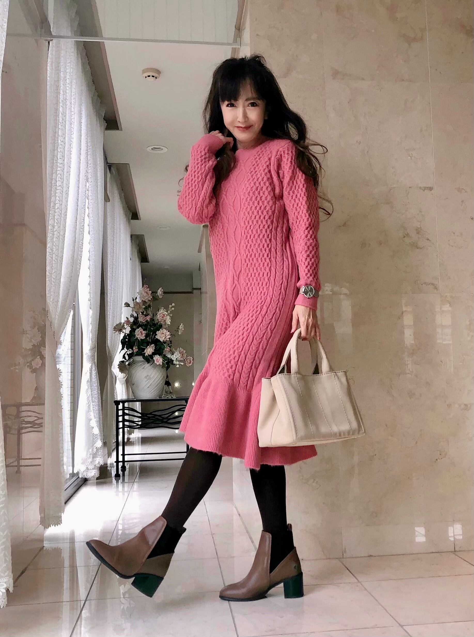 「ニットワンピは体型出ちゃうから、、」と敬遠される方でも、これはぴったりし過ぎないシルエットなのでおススメです^_−☆