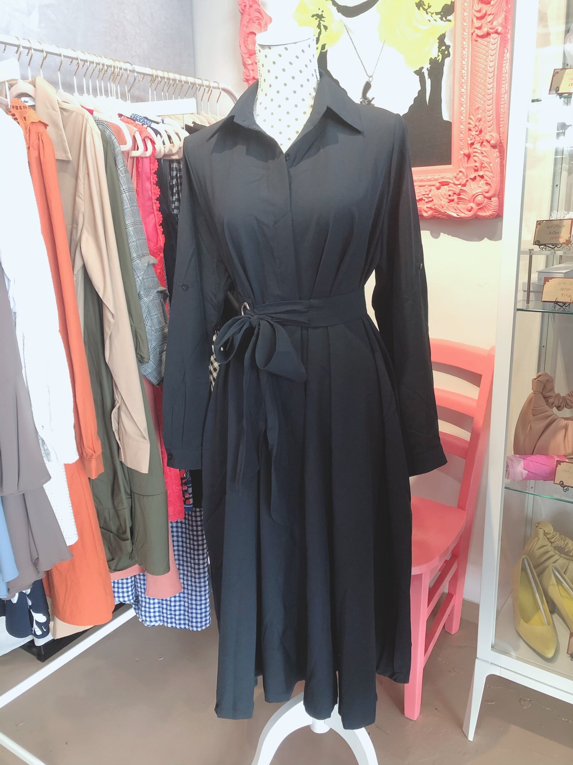リボンベルトつきフレアシャツワンピ