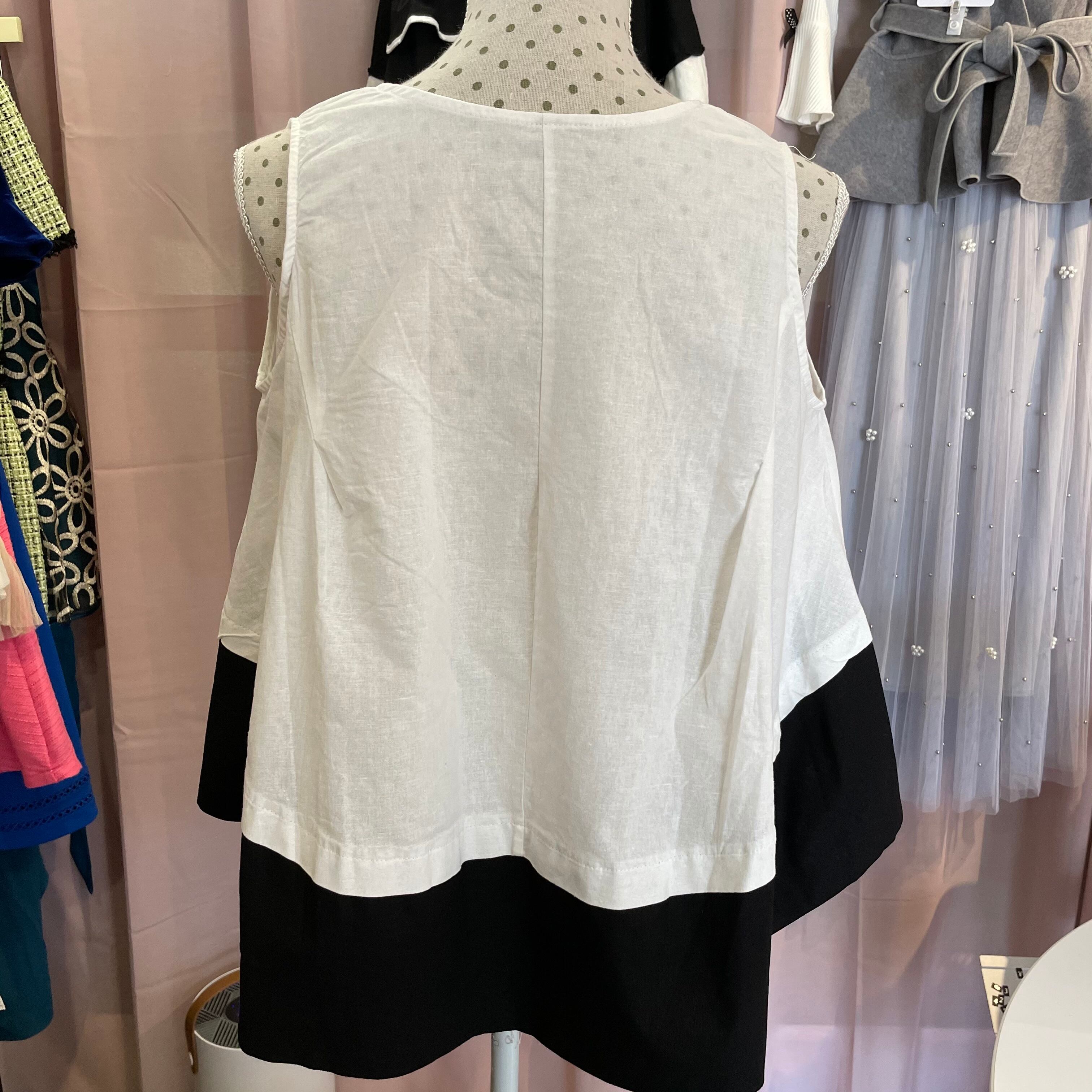 裾の配色切り替え&裾広がりのシルエットが、気になるお腹まわりをカバー、脚長効果もあります!!