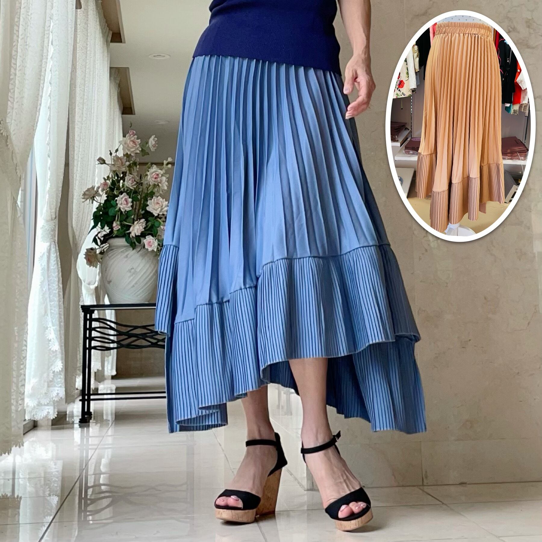 2種類のプリーツを切り替えることにより、動くたびに表情豊かなエレガントなスカートです♡