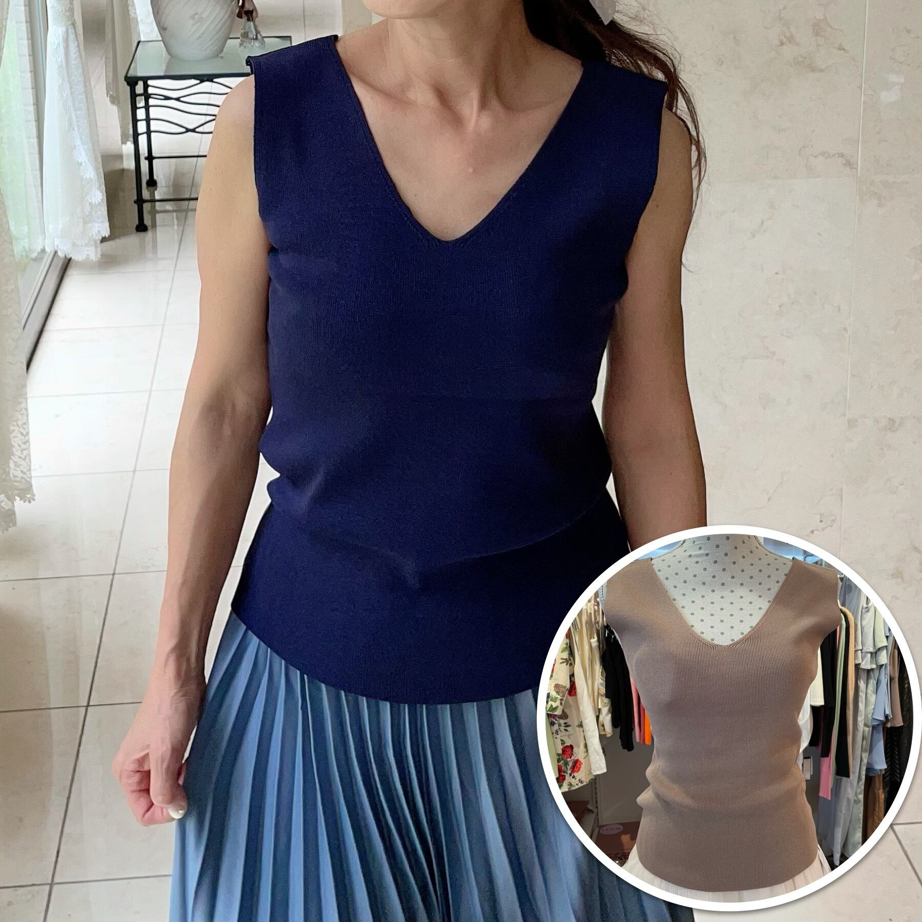 抜け感あるVネックでデコルテをすっきり&エレガントに魅せます。