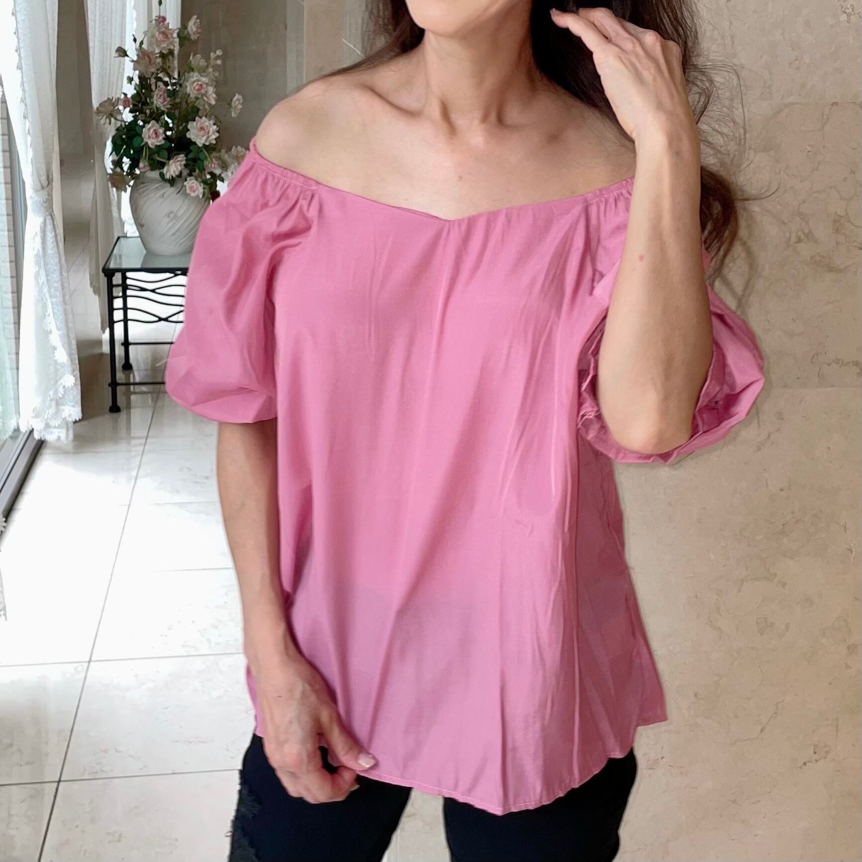 可愛いピンク♡オフショルブラウス