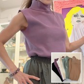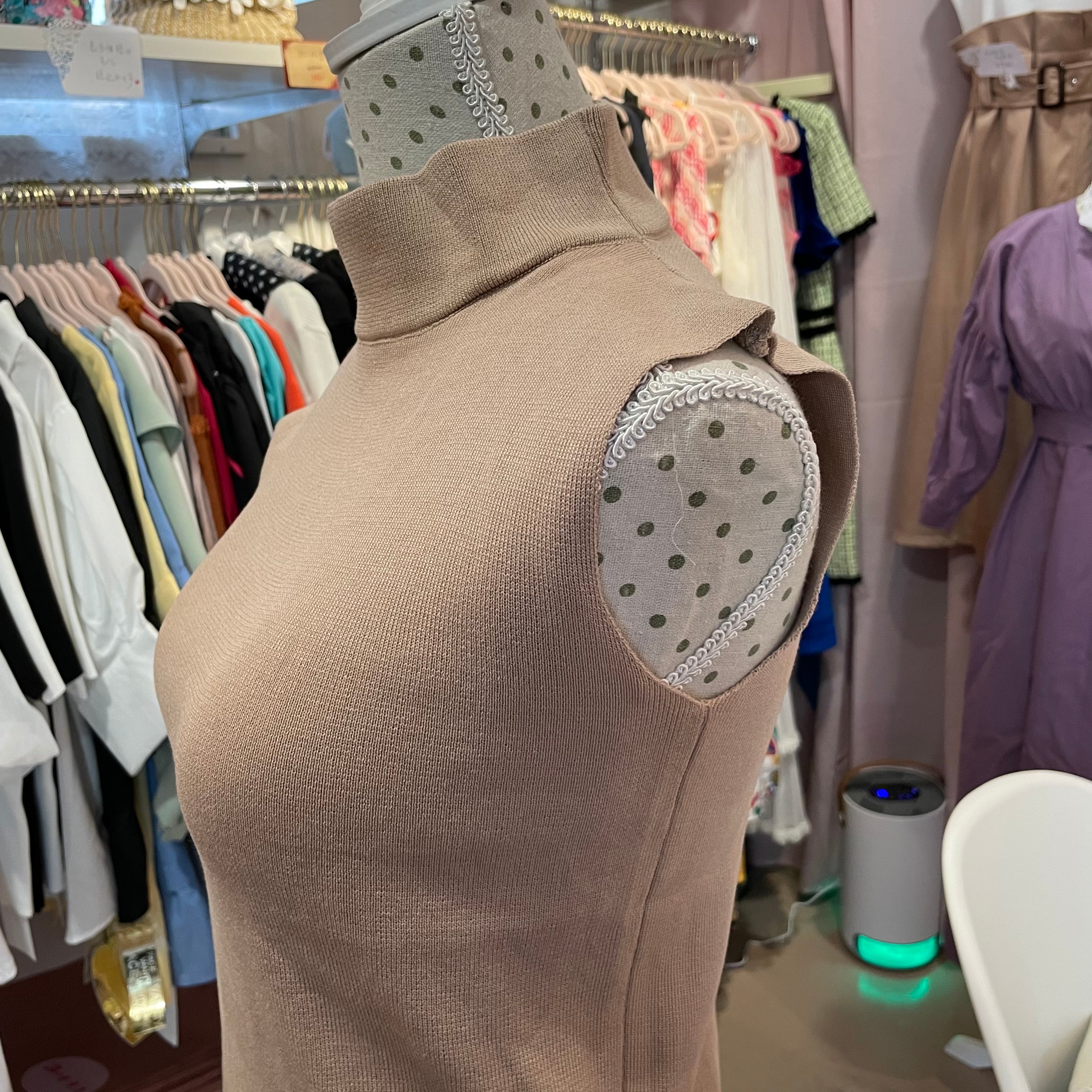 この微妙なシーズン(夏の終わり〜秋の初め)に大活躍するのが、ハイネックでノースリーブのこんなニットです!!