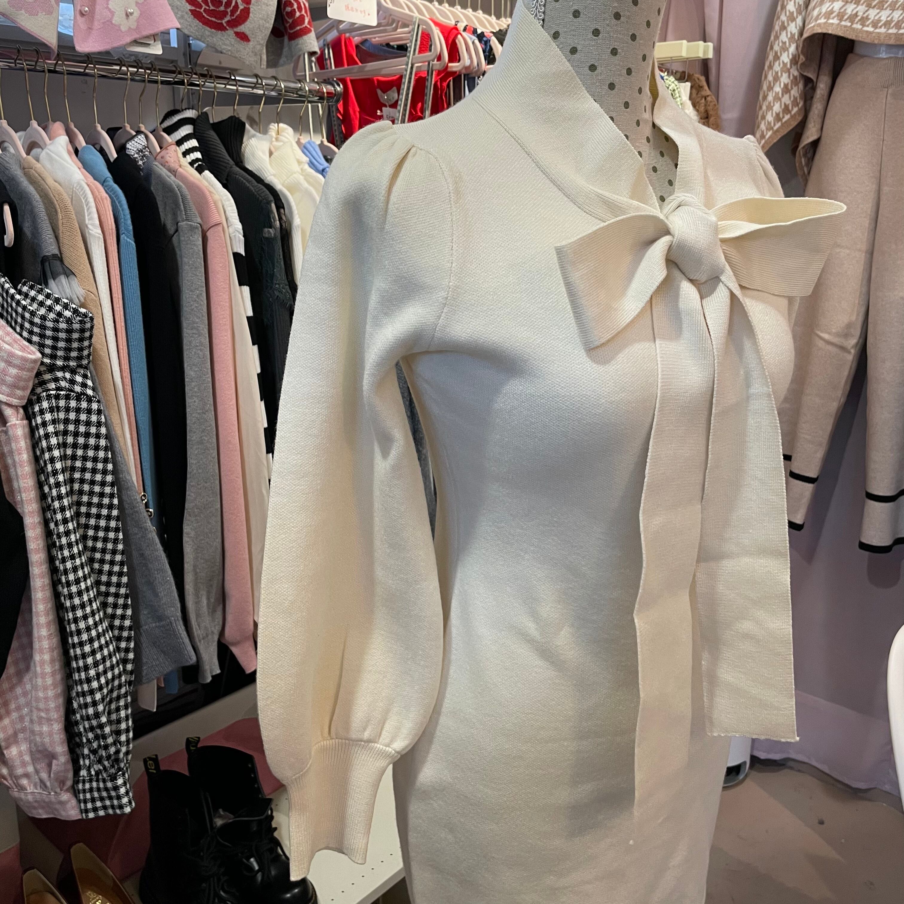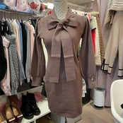 ボウタイデザイン ニットワンピ