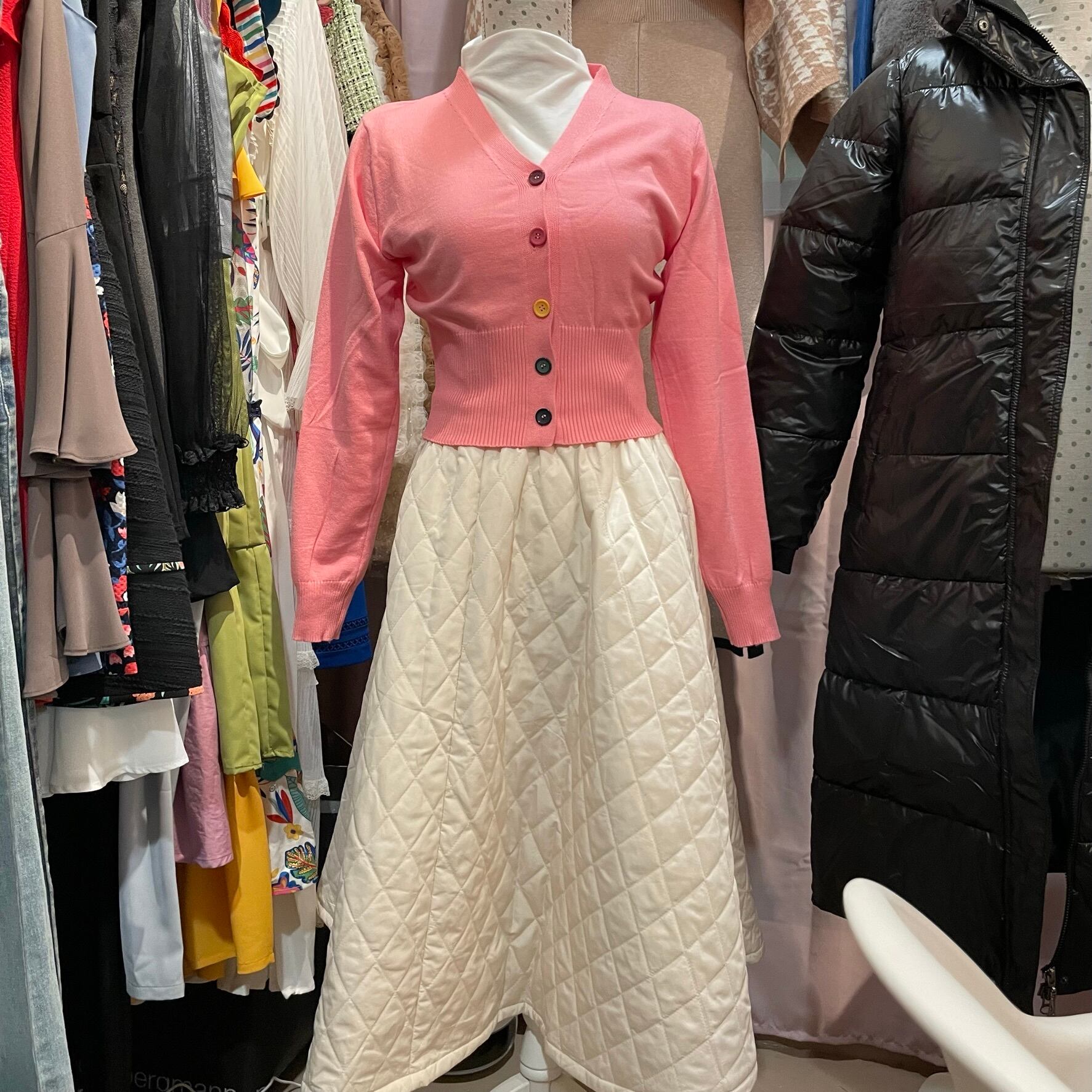 カラフルボタン ニットカーディガン
