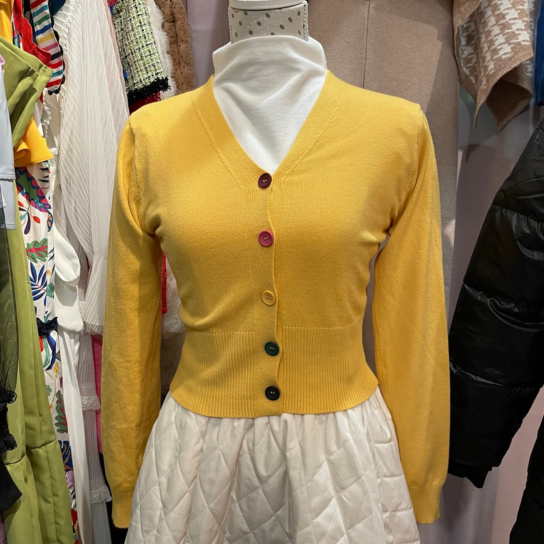 カラフルボタンがキュートなショート丈カーディガン♡