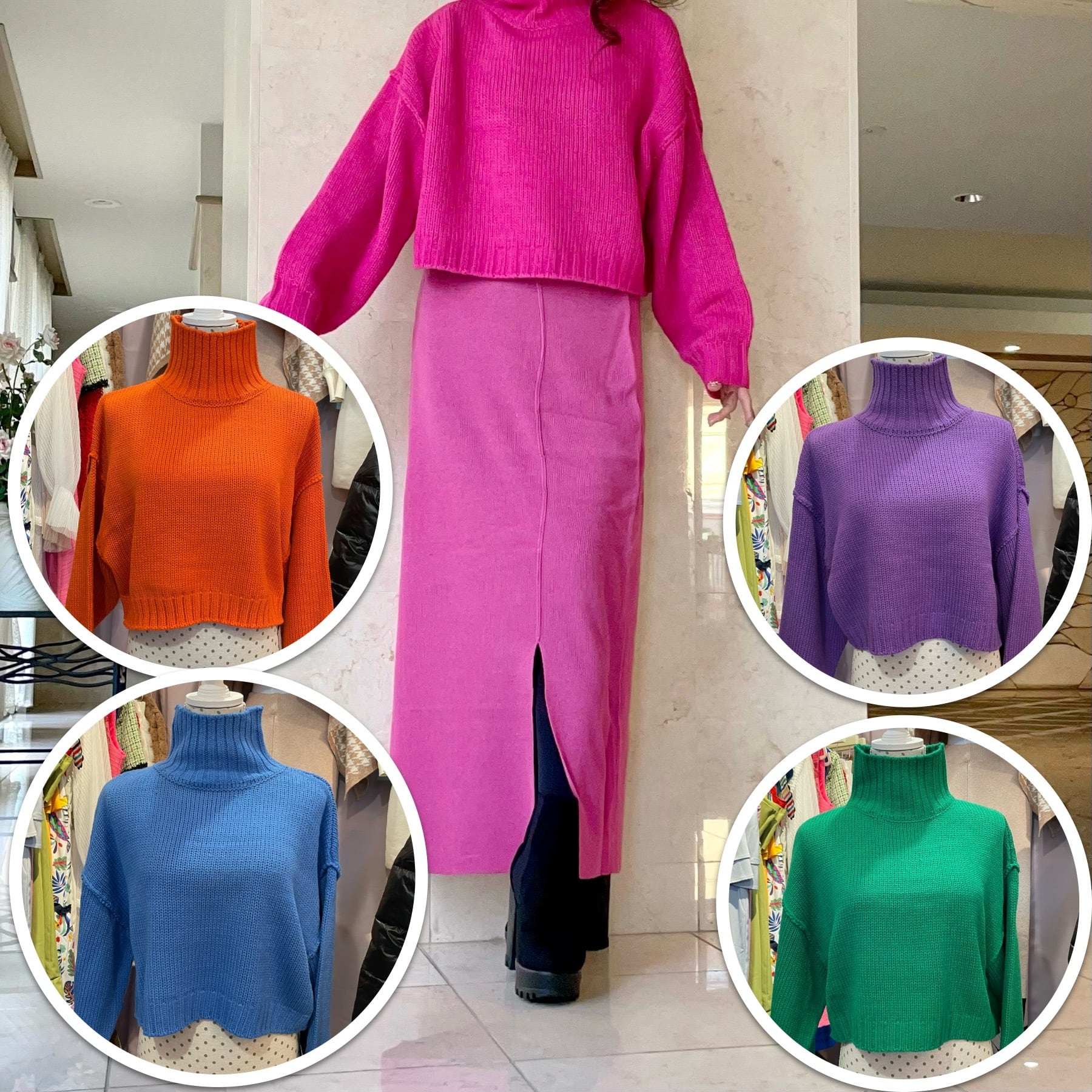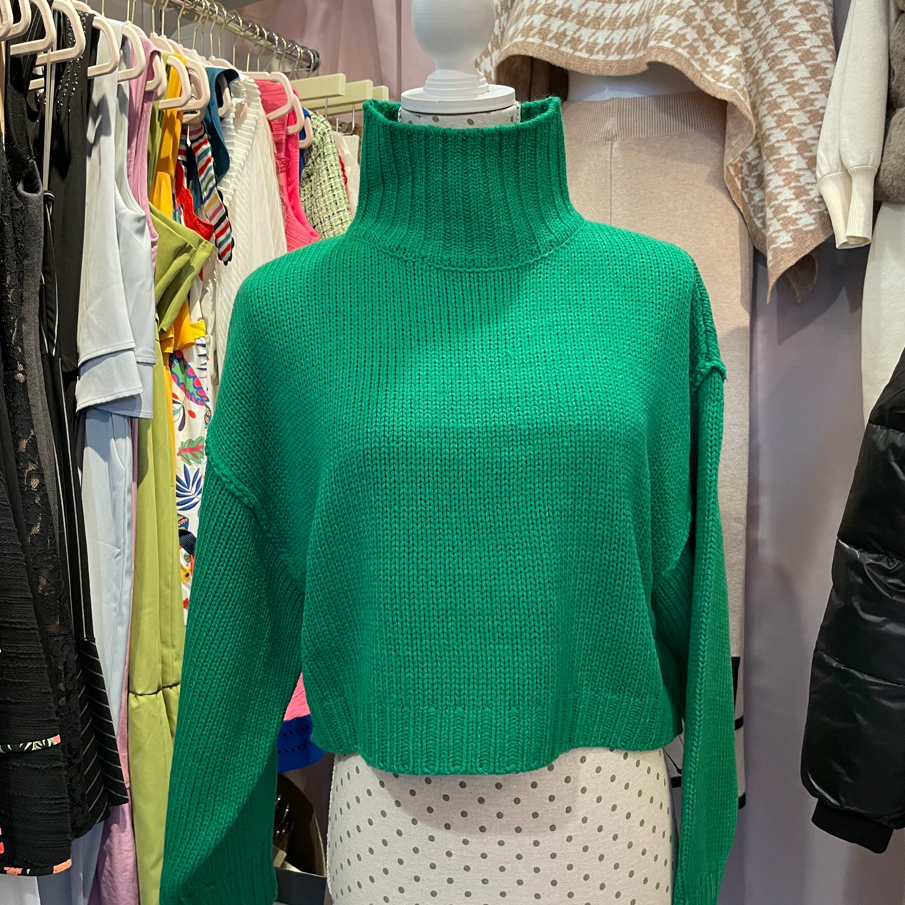ハイネックが首元までしっかり温めてくれる、ショート丈のバルキーニットトップスです^ ^