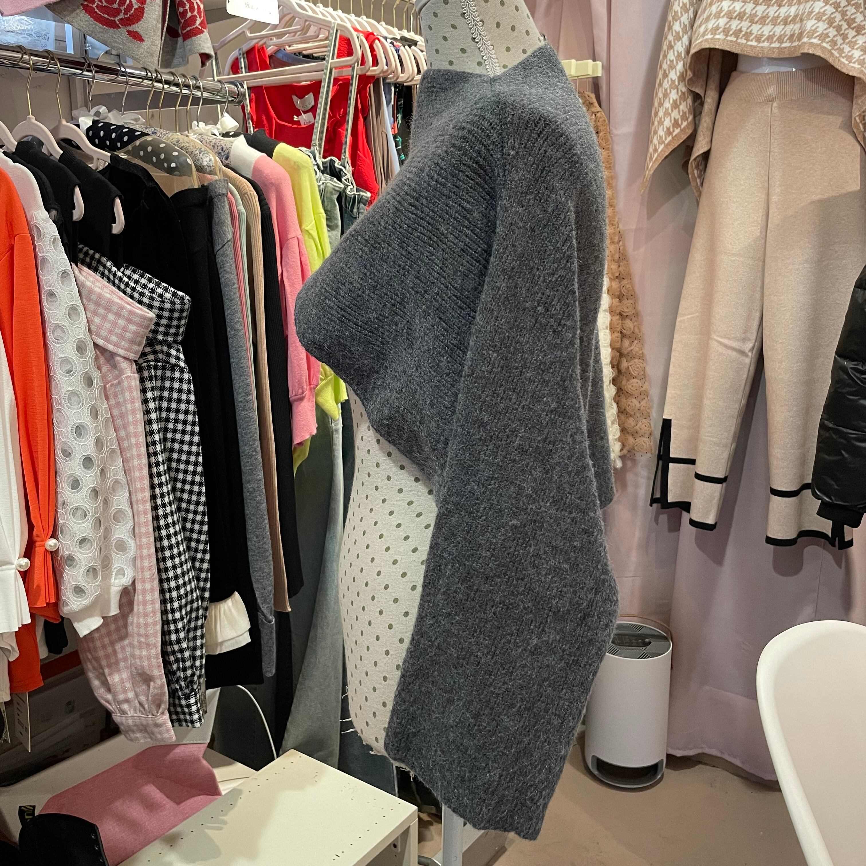 コンパクトな着丈ですが、ワイドスリーブでゆるっと抜け感があり、モードな印象です。