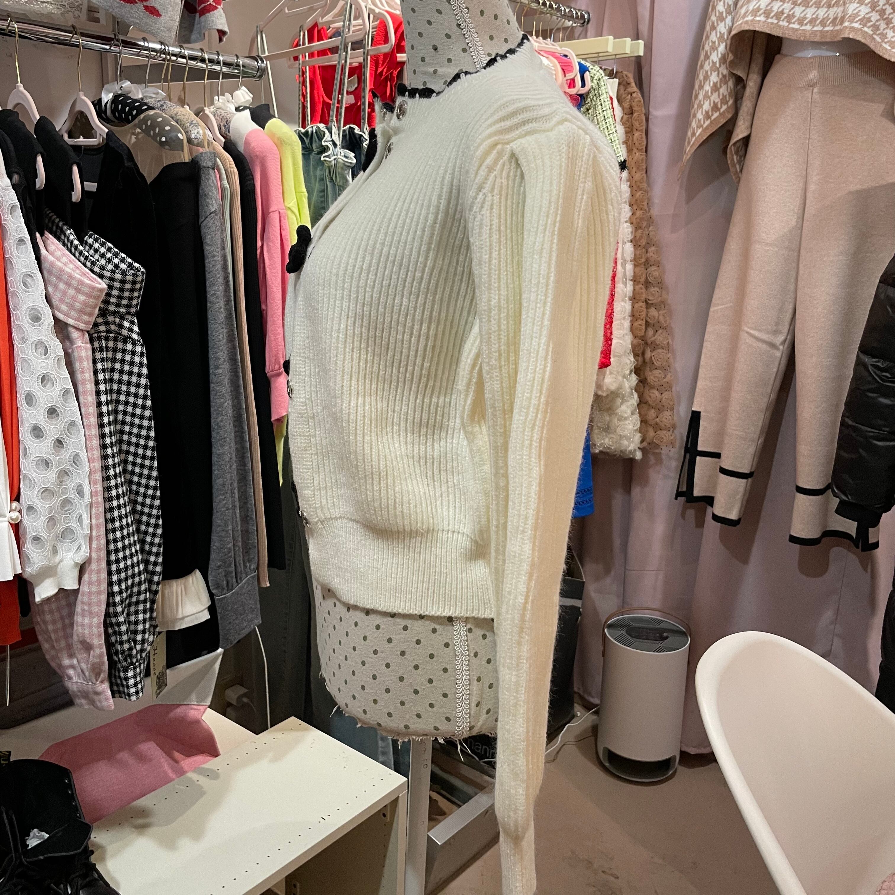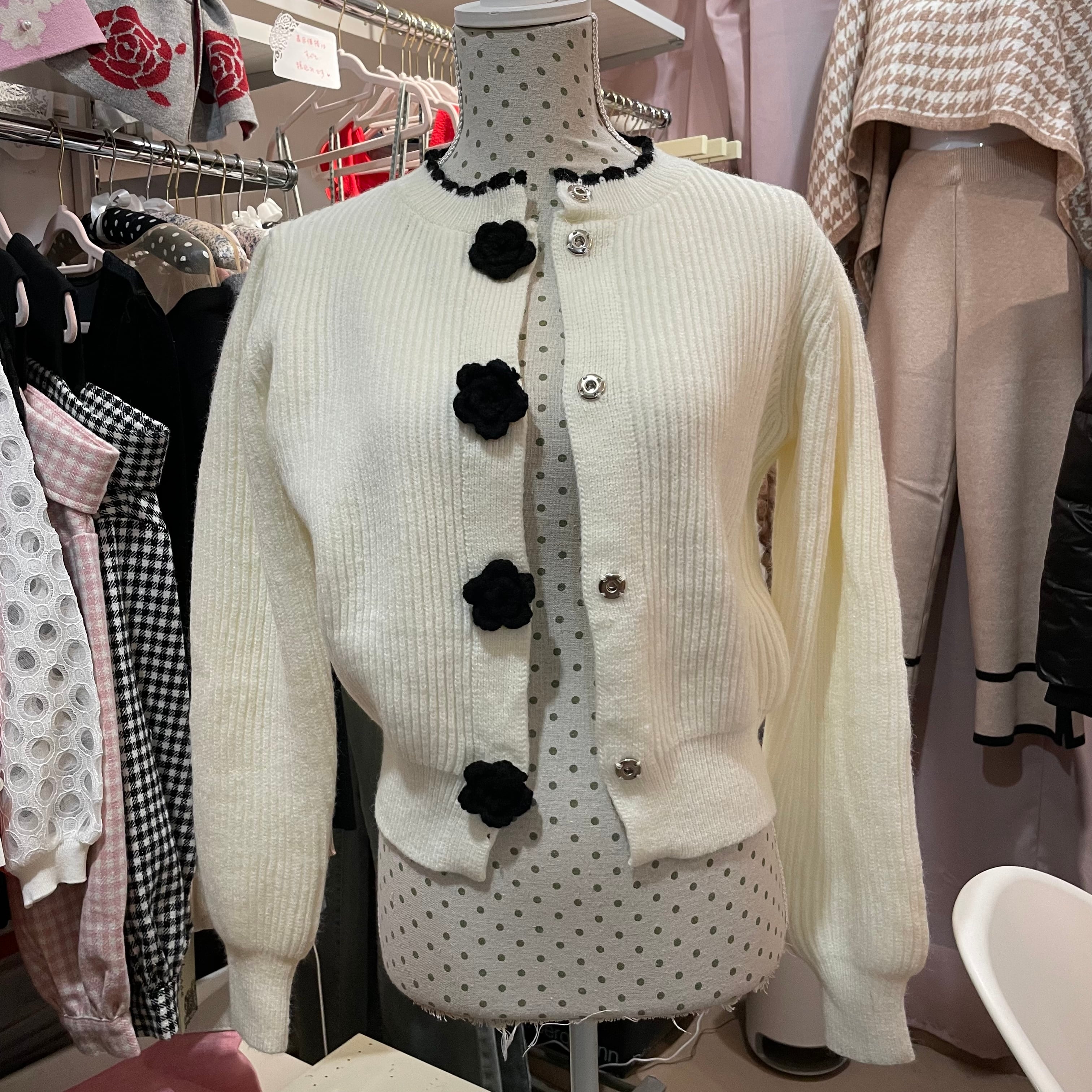 手編み風のお花ボタンがなんともキュートな [愛されカーディガン]♡