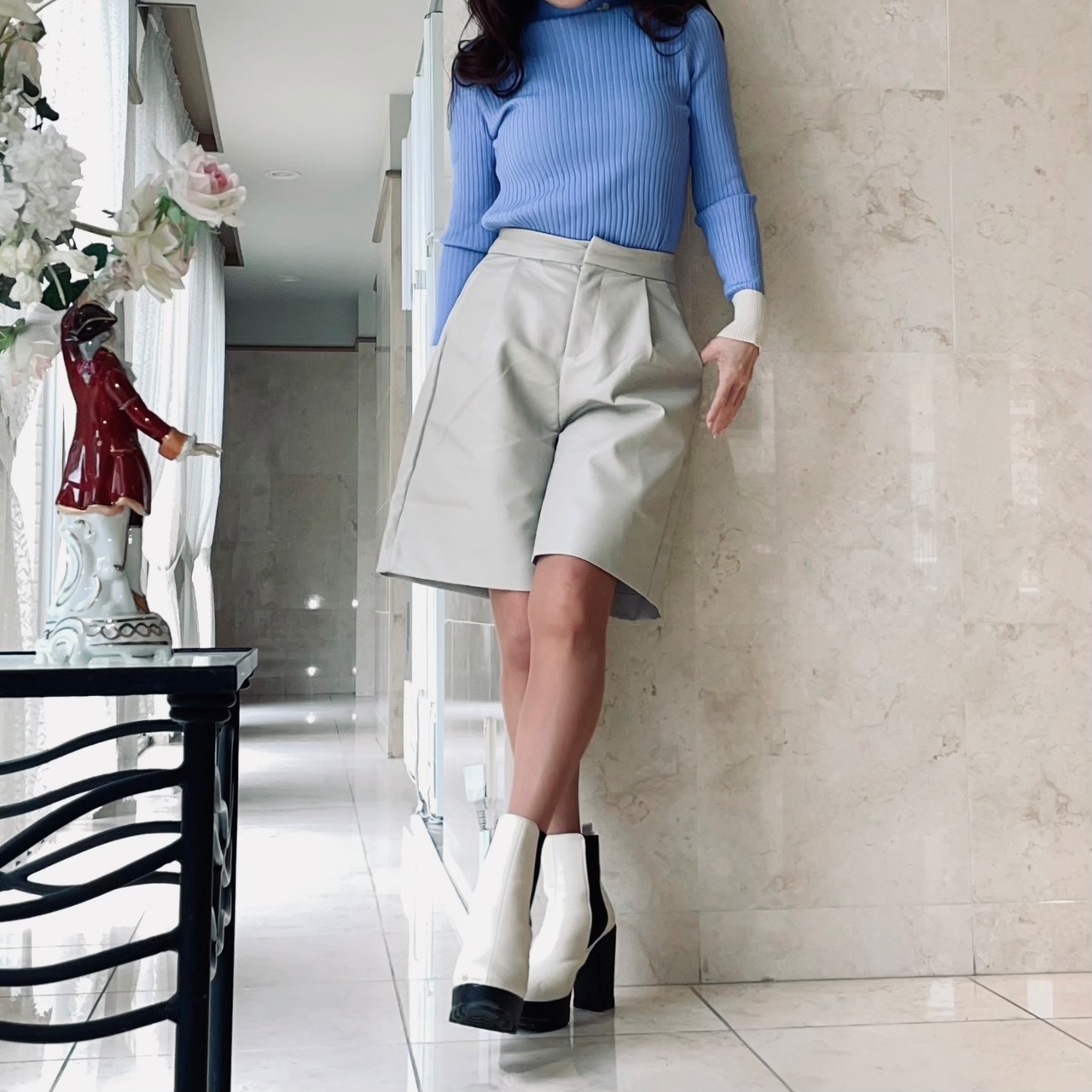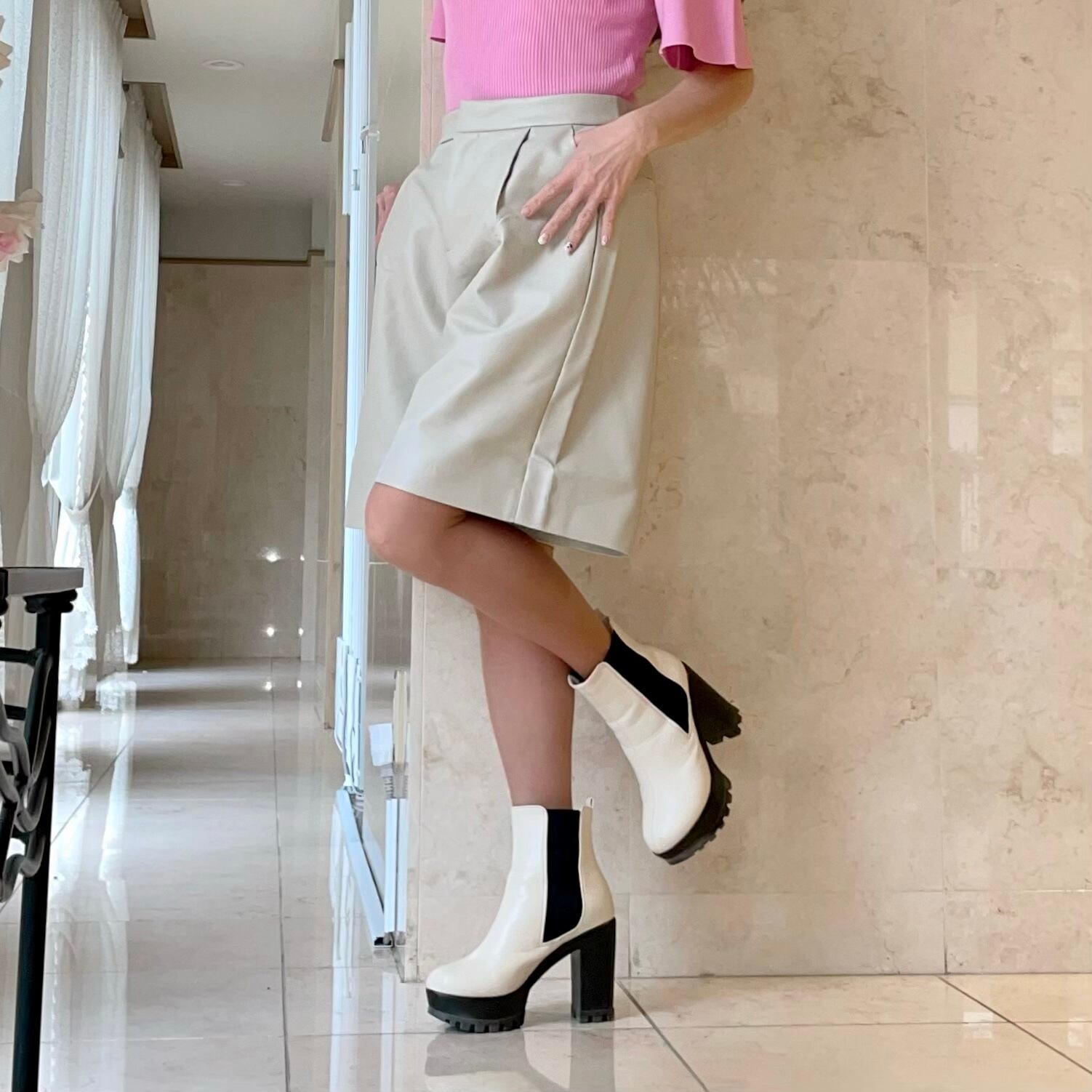秋冬の人気完売アイテム、エコレザーハーフパンツに春向けの新色が登場!!