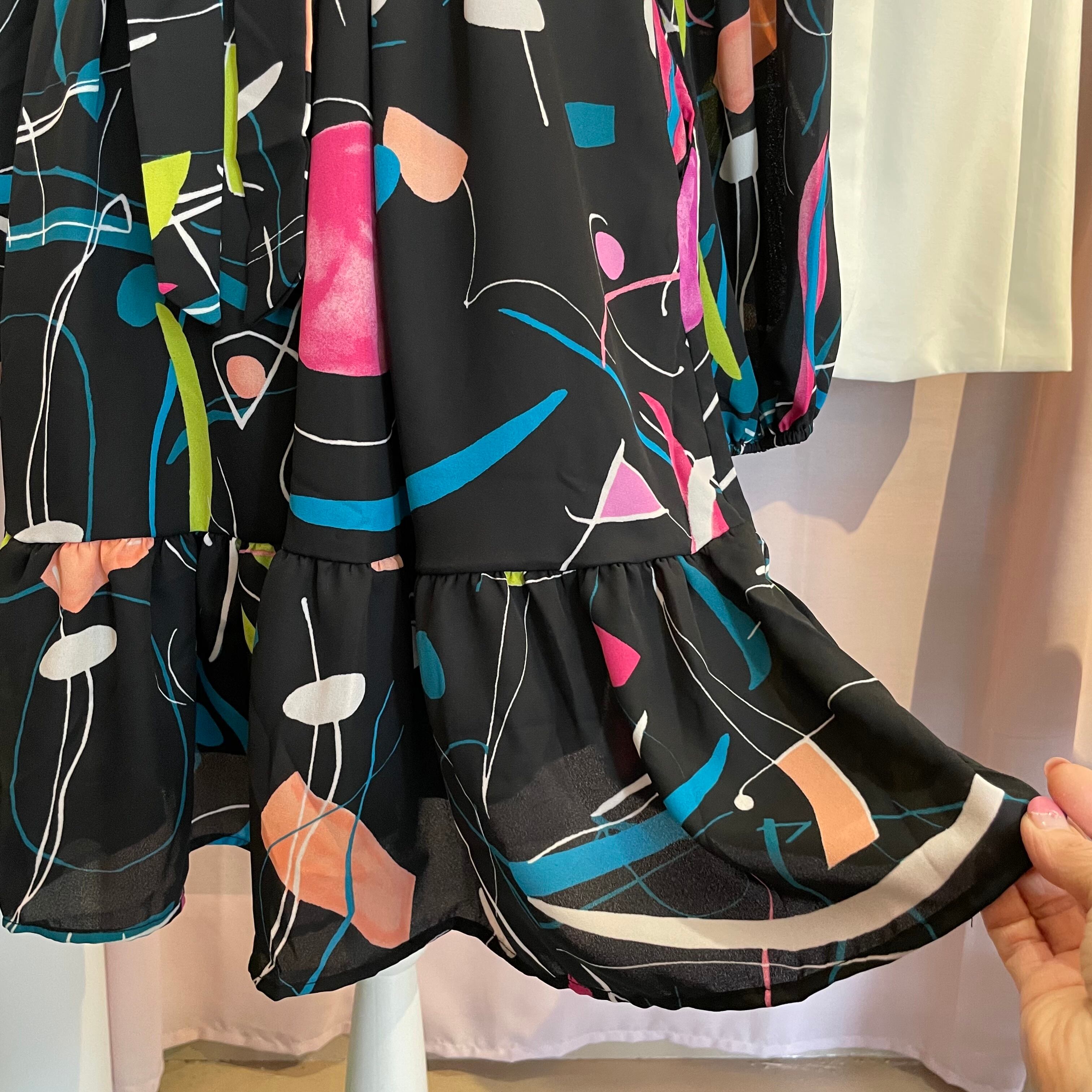 胸元のボウタイやパフスリーブ、裾のフリルがフェミニンなLAインポートドレス♡