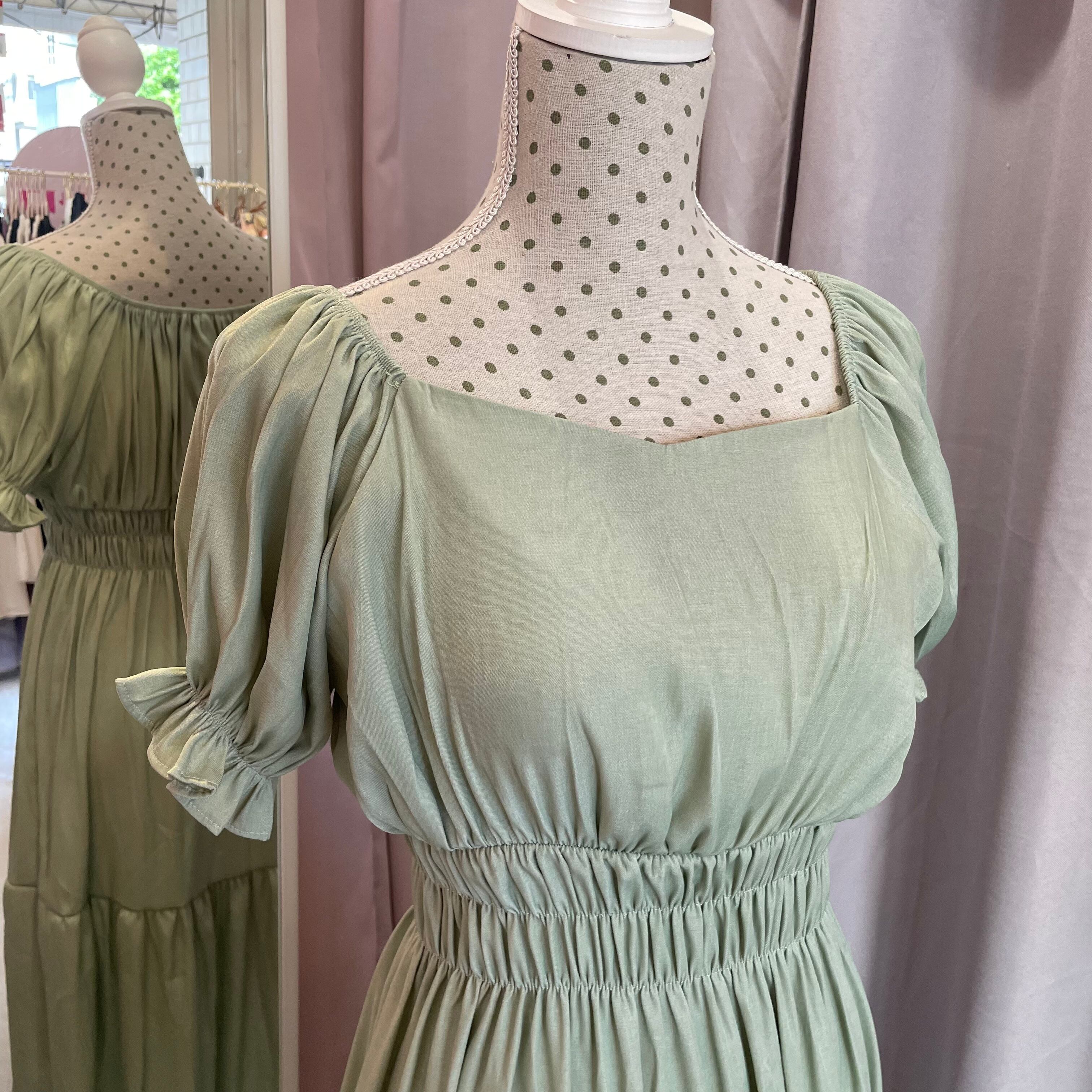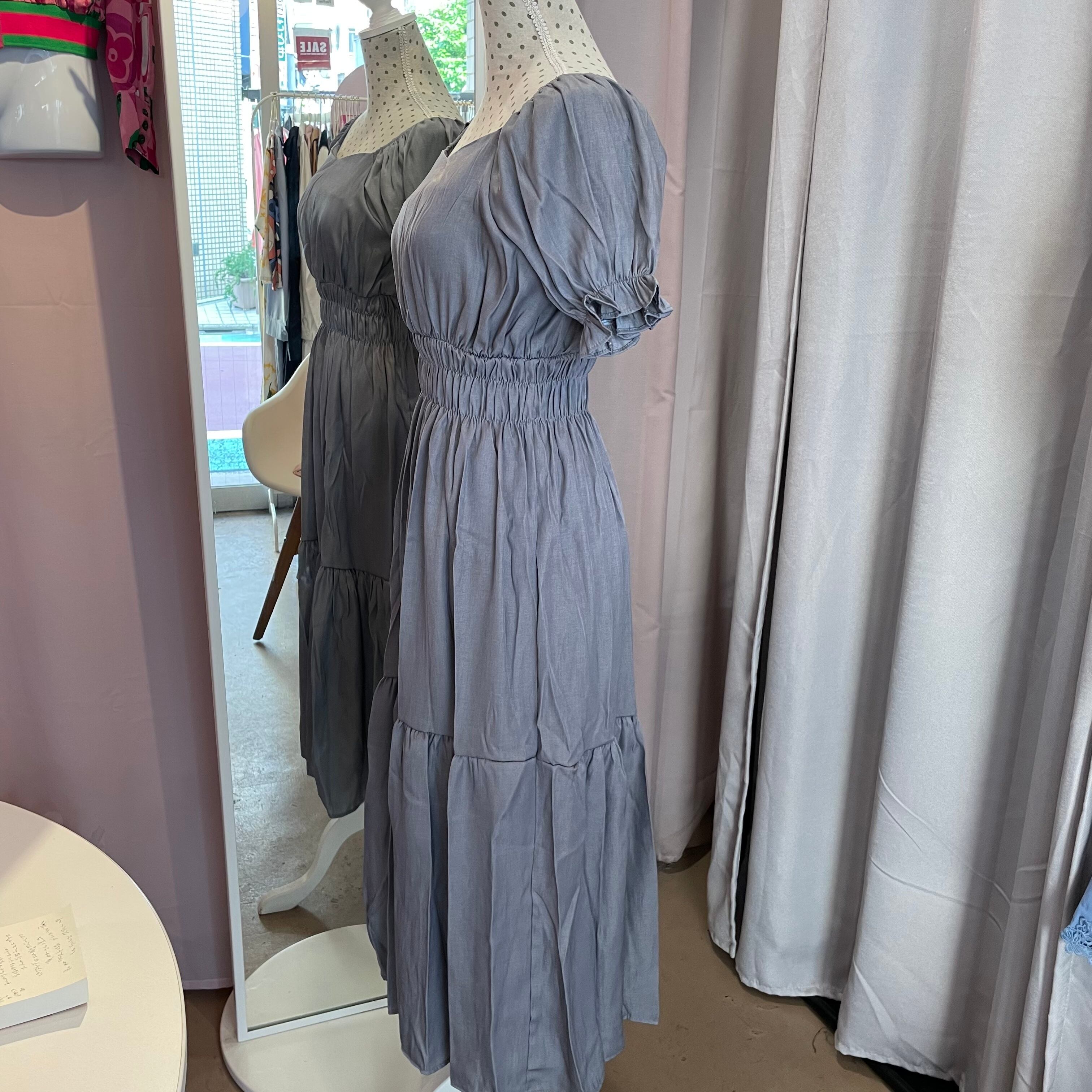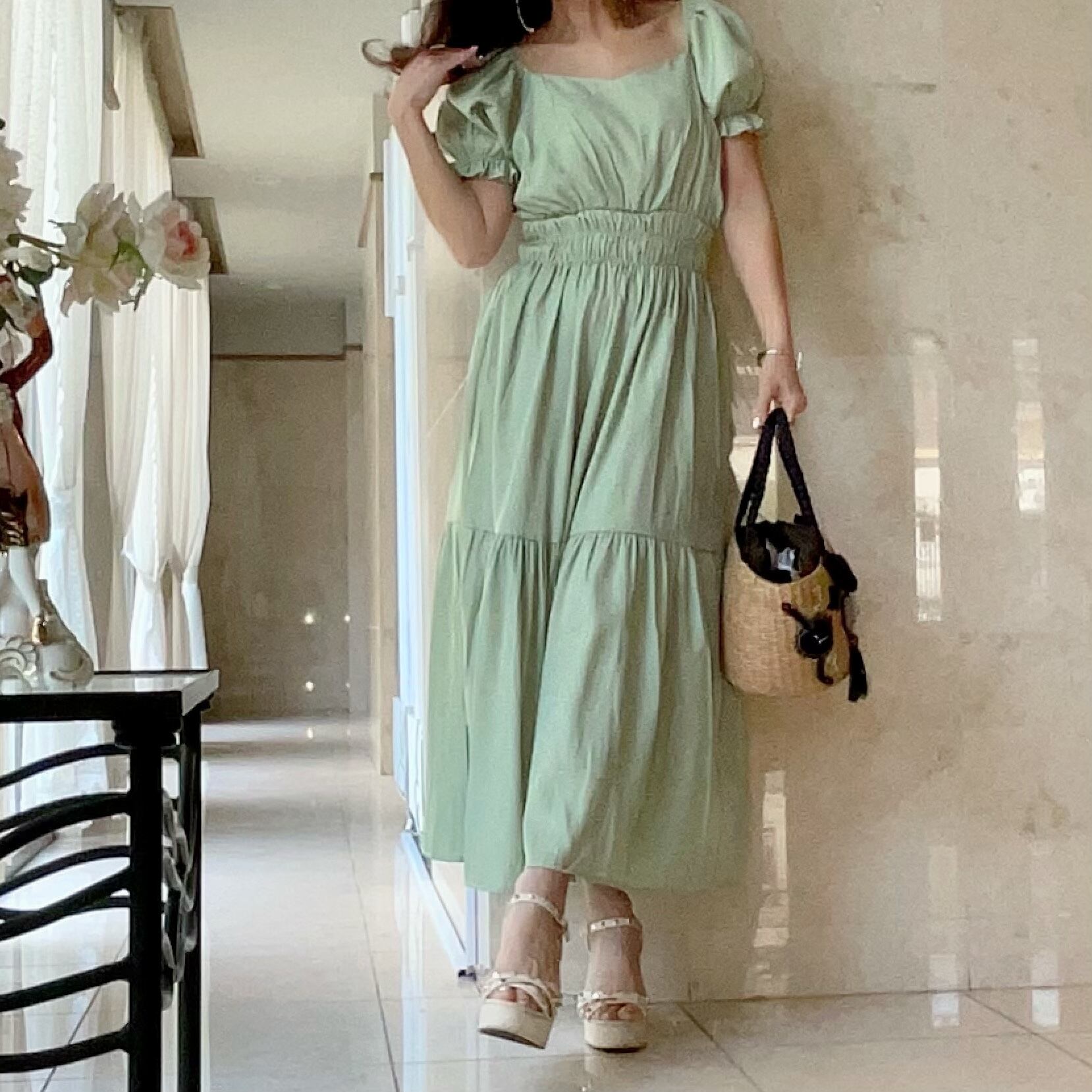 パフスリーブや、ふんわり広がるティアード切替えの立体的なシルエットが大人の可愛らしさを演出。