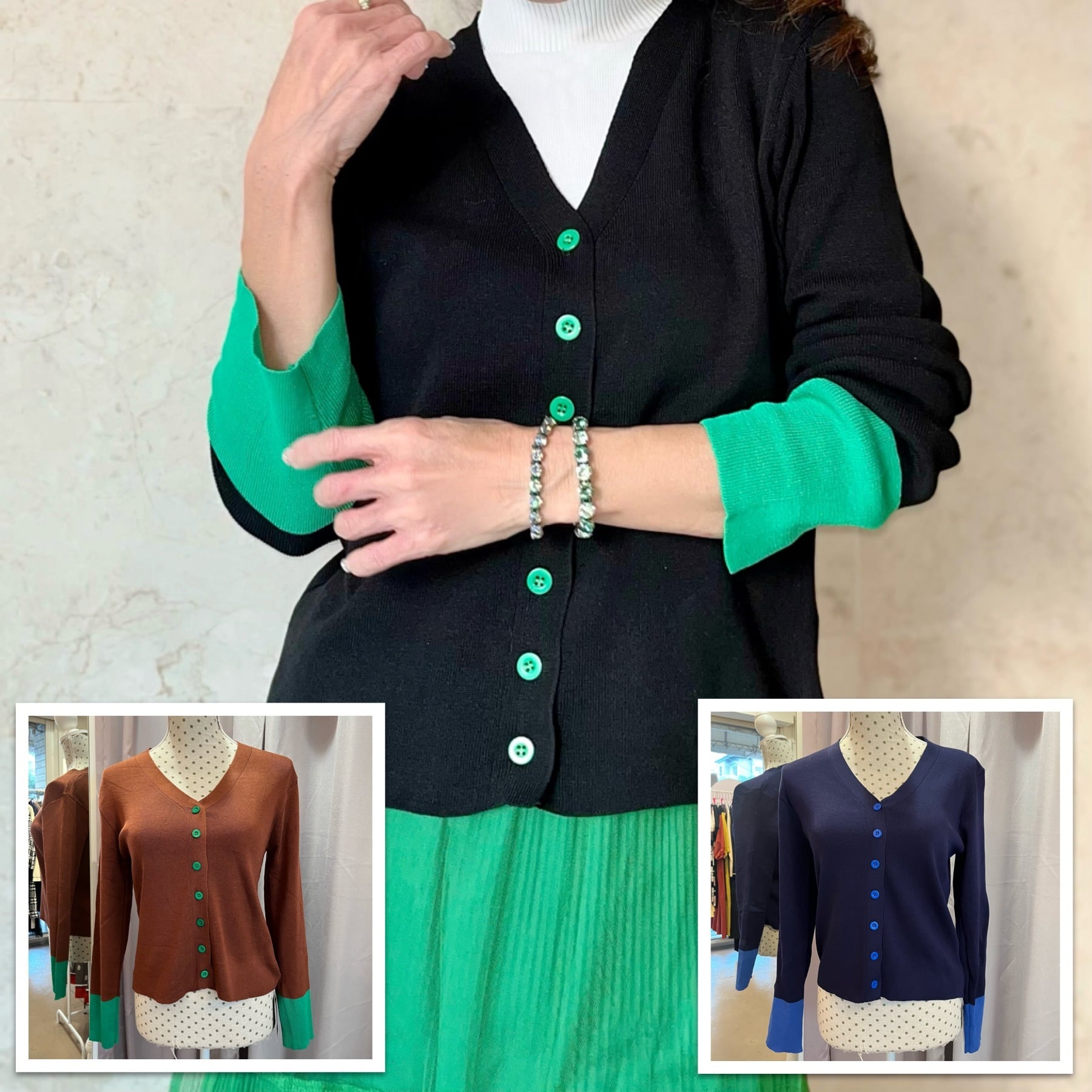 袖口とボタンの配色がハイセンスなカーディガンです♡