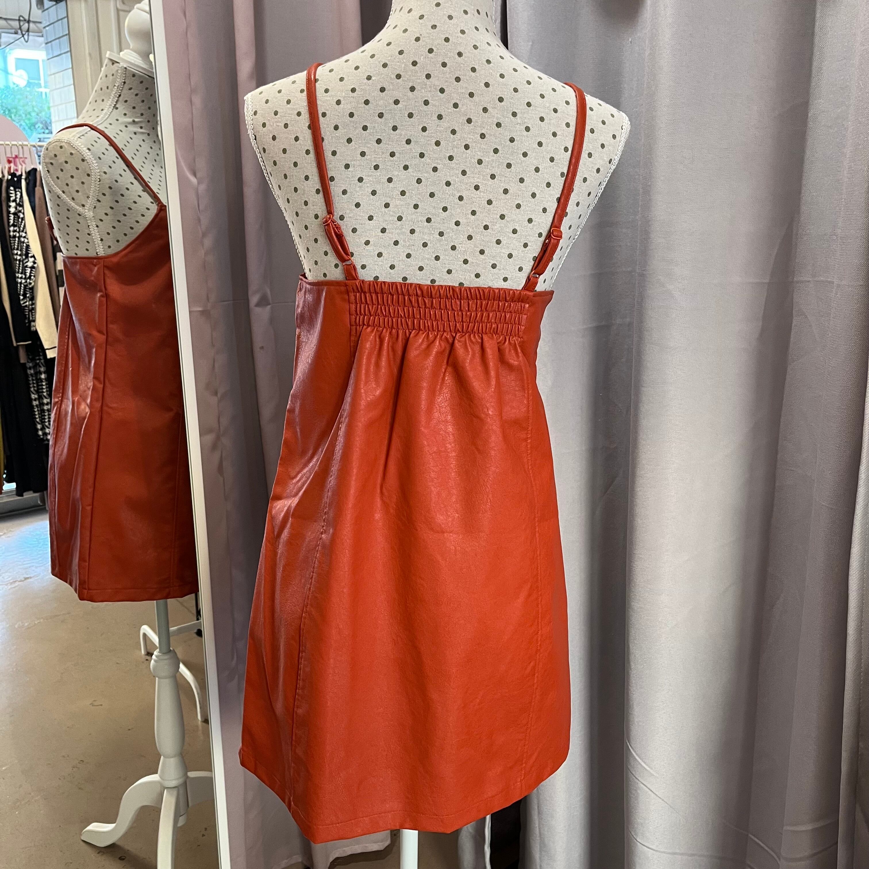 リアルな質感にこだわった合皮素材のミニキャミワンピ♡