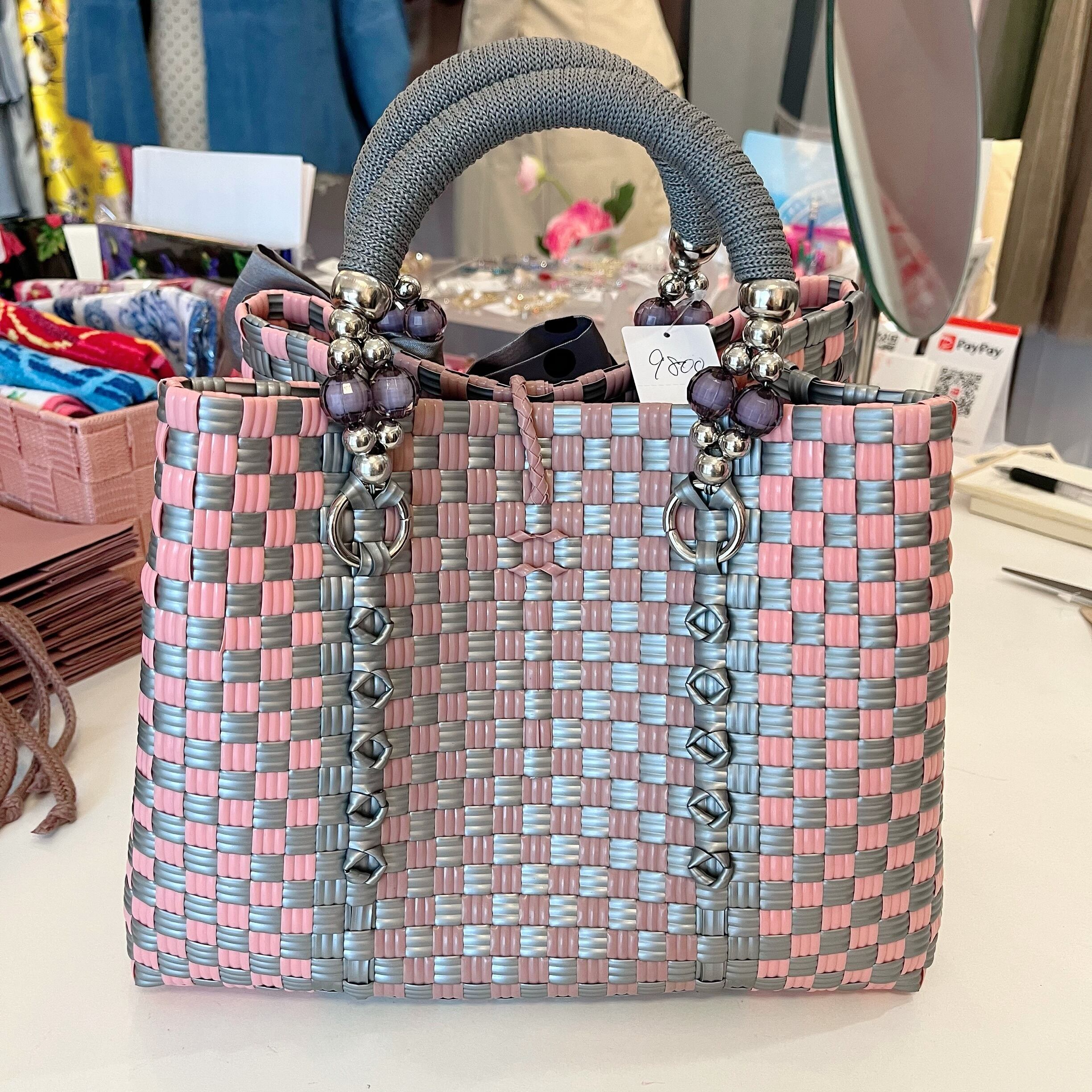 バリニーズバッグ.エレガンスシリーズ.ピンク×シルバー